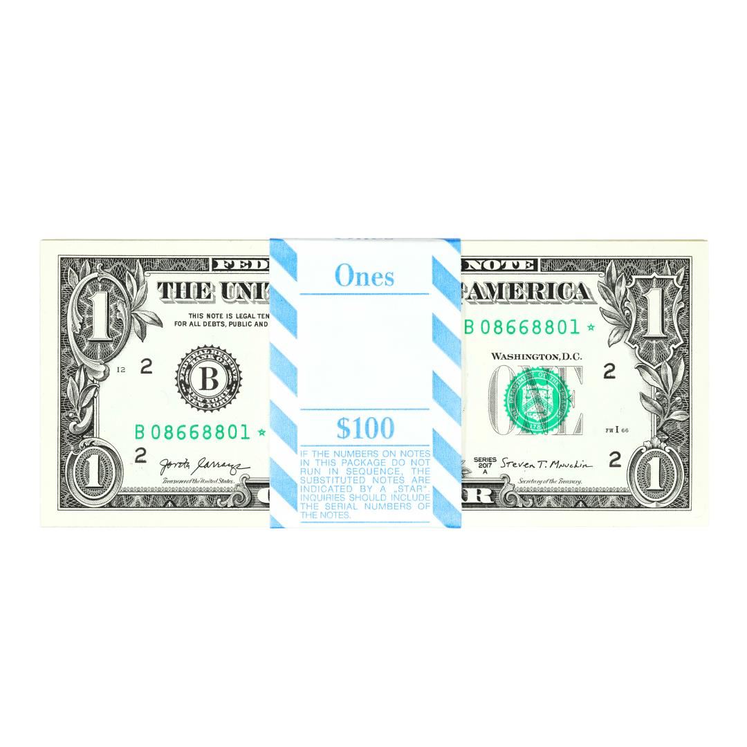 Pack of (100) Consecutive 2017A $1 Federal Reserve STAR Notes New York