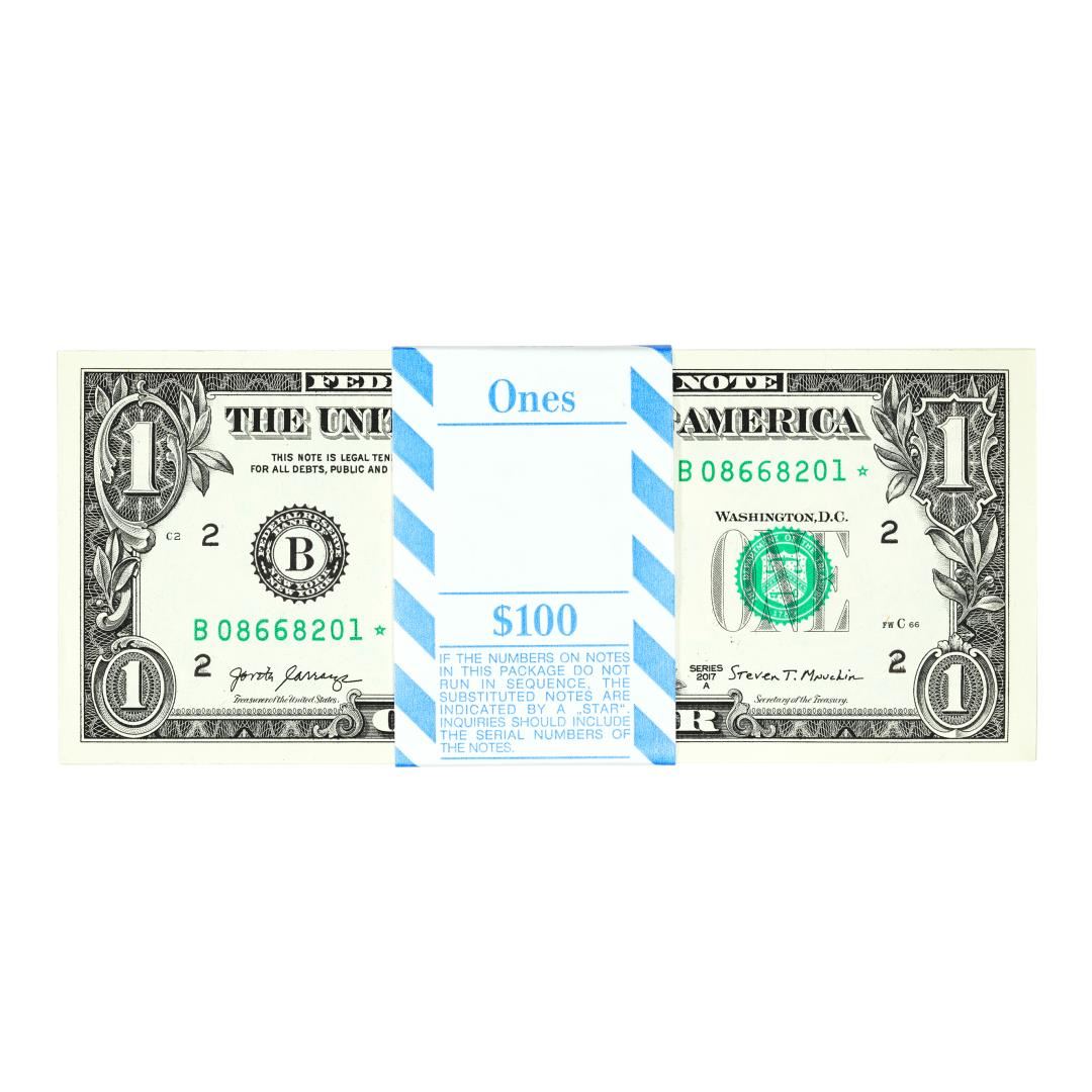 Pack of (100) Consecutive 2017A $1 Federal Reserve STAR Notes New York