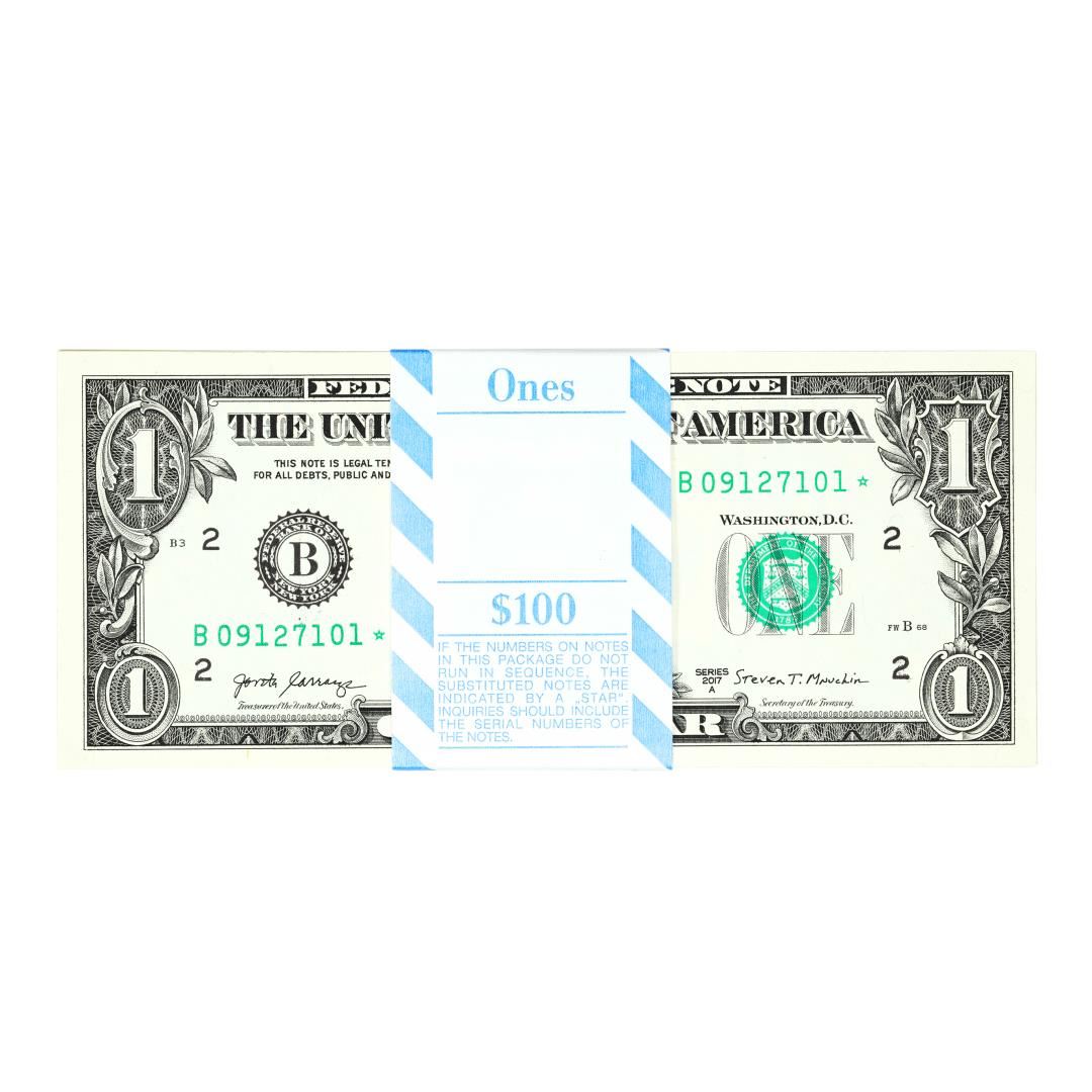 Pack of (100) Consecutive 2017A $1 Federal Reserve STAR Notes New York