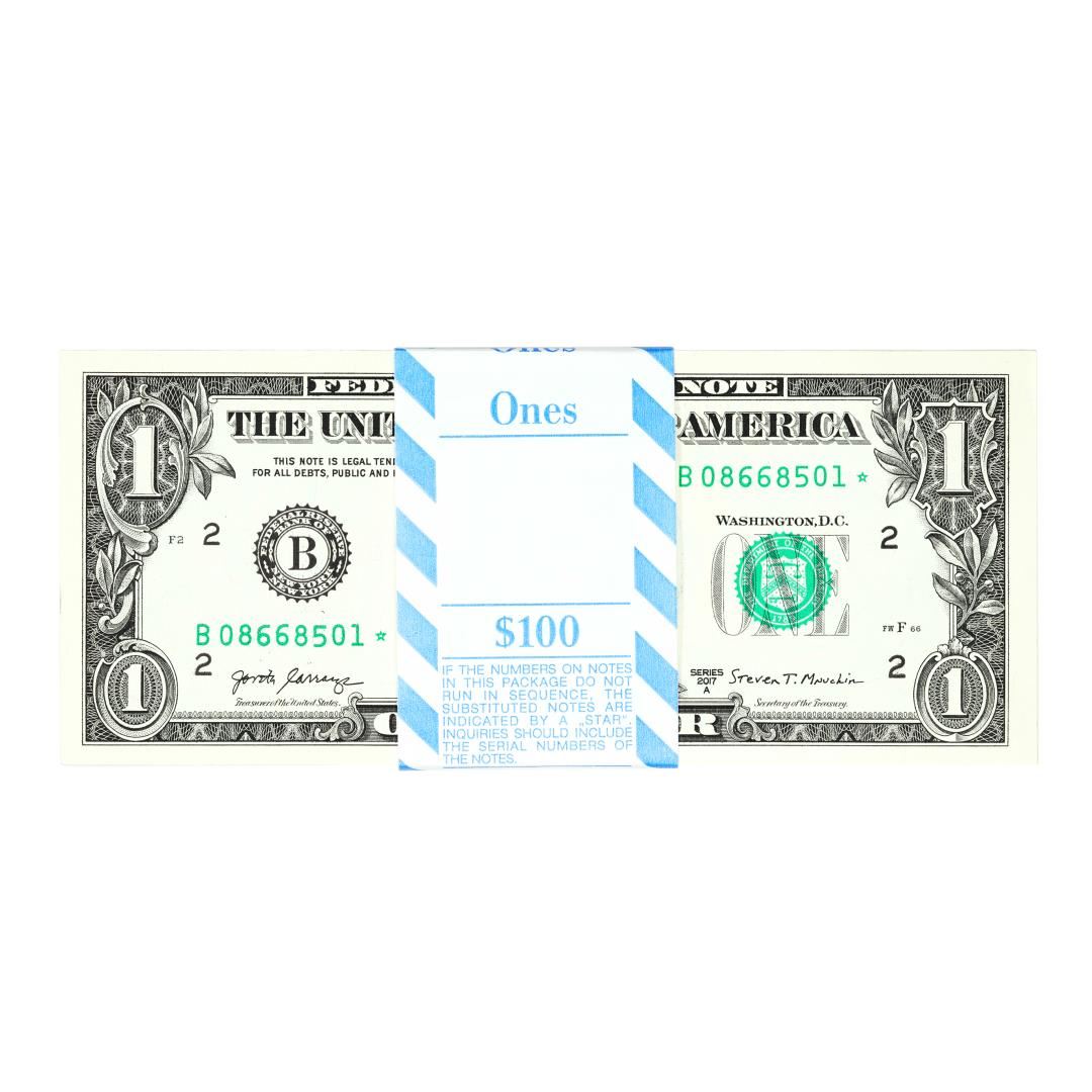 Pack of (100) Consecutive 2017A $1 Federal Reserve STAR Notes New York