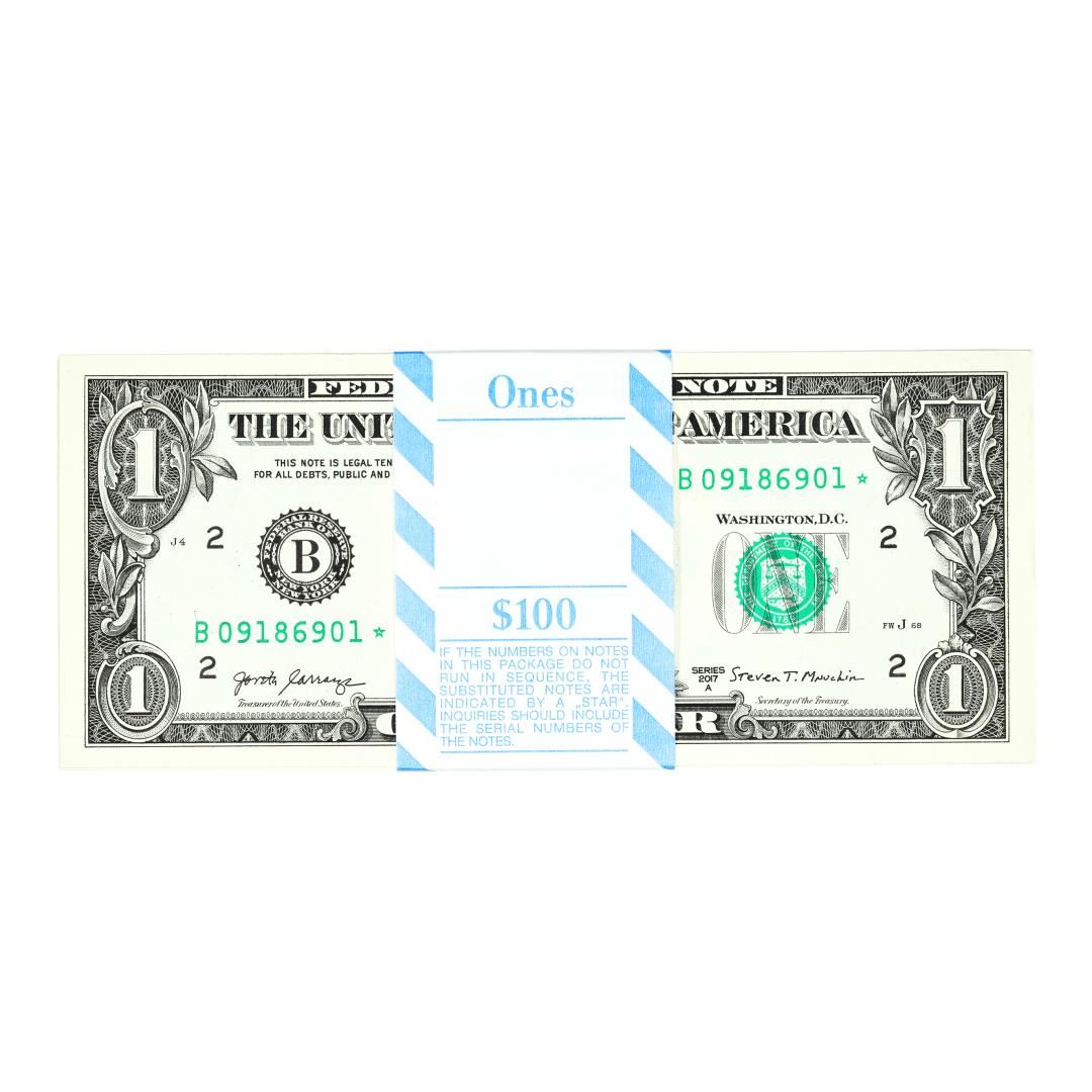 Pack of (100) Consecutive 2017A $1 Federal Reserve STAR Notes New York
