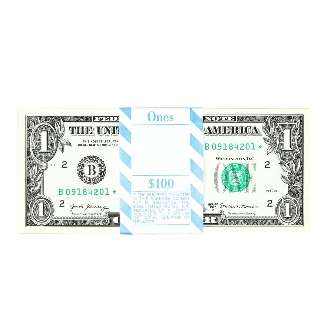 Pack of (100) Consecutive 2017A $1 Federal Reserve STAR Notes New York