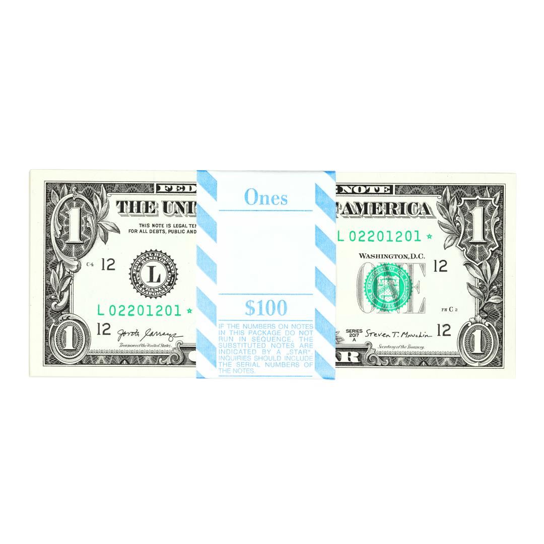 One Pack of (100) Consecutive 2017A $1 Federal Reserve STAR Notes San Francisco Trinary S/N.