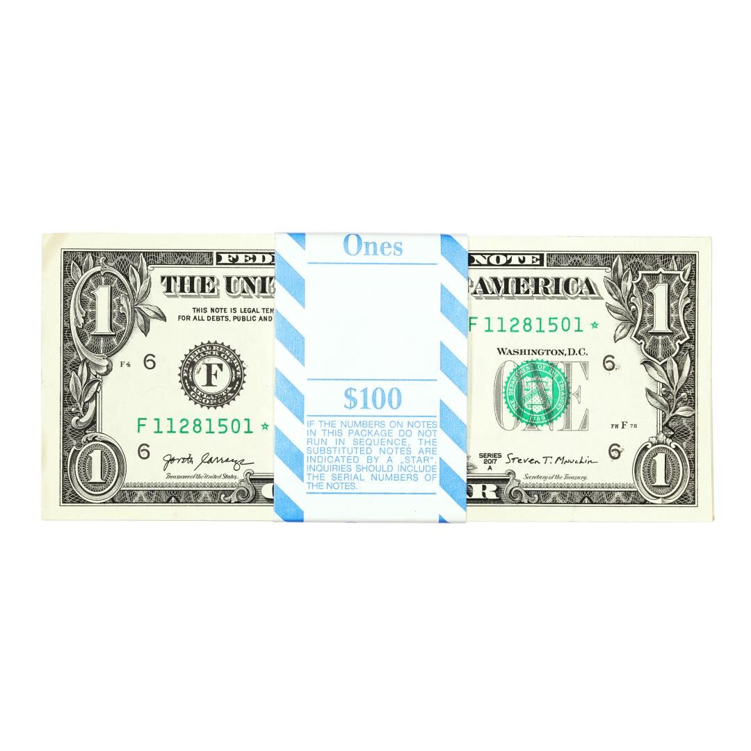 Pack of (100) Consecutive 2017A $1 Federal Reserve Star Notes Atlanta