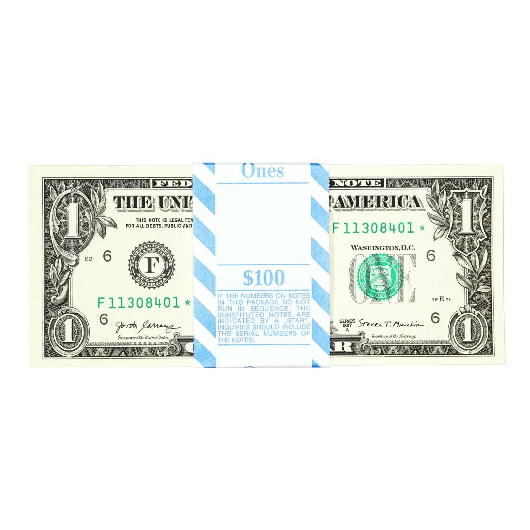 Pack of (100) Consecutive 2017A $1 Federal Reserve Star Notes Atlanta