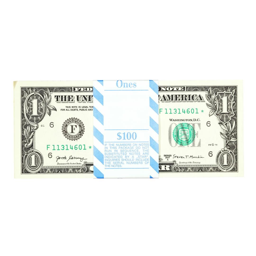 Pack of (100) Consecutive 2017A $1 Federal Reserve Star Notes Atlanta