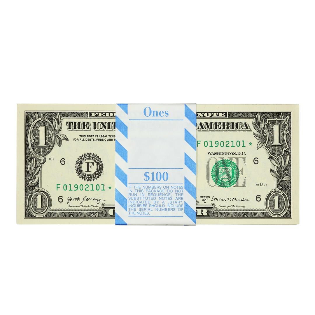Pack of (100) Consecutive 2017A $1 Federal Reserve Star Notes Atlanta