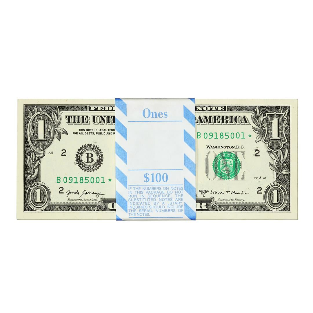 Pack of (100) Consecutive 2017A $1 Federal Reserve Star Notes New York