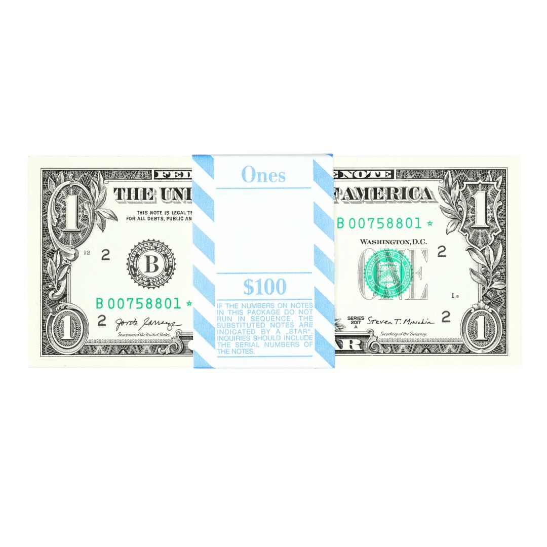 Pack of (100) Consecutive 2017A $1 Federal Reserve Star Notes New York