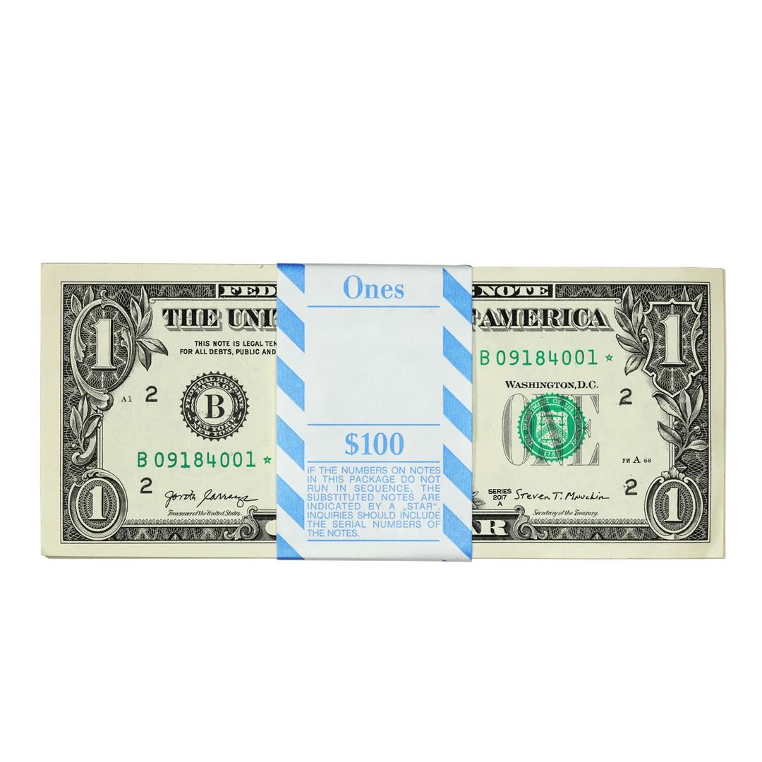Pack of (100) Consecutive 2017A $1 Federal Reserve Star Notes New York