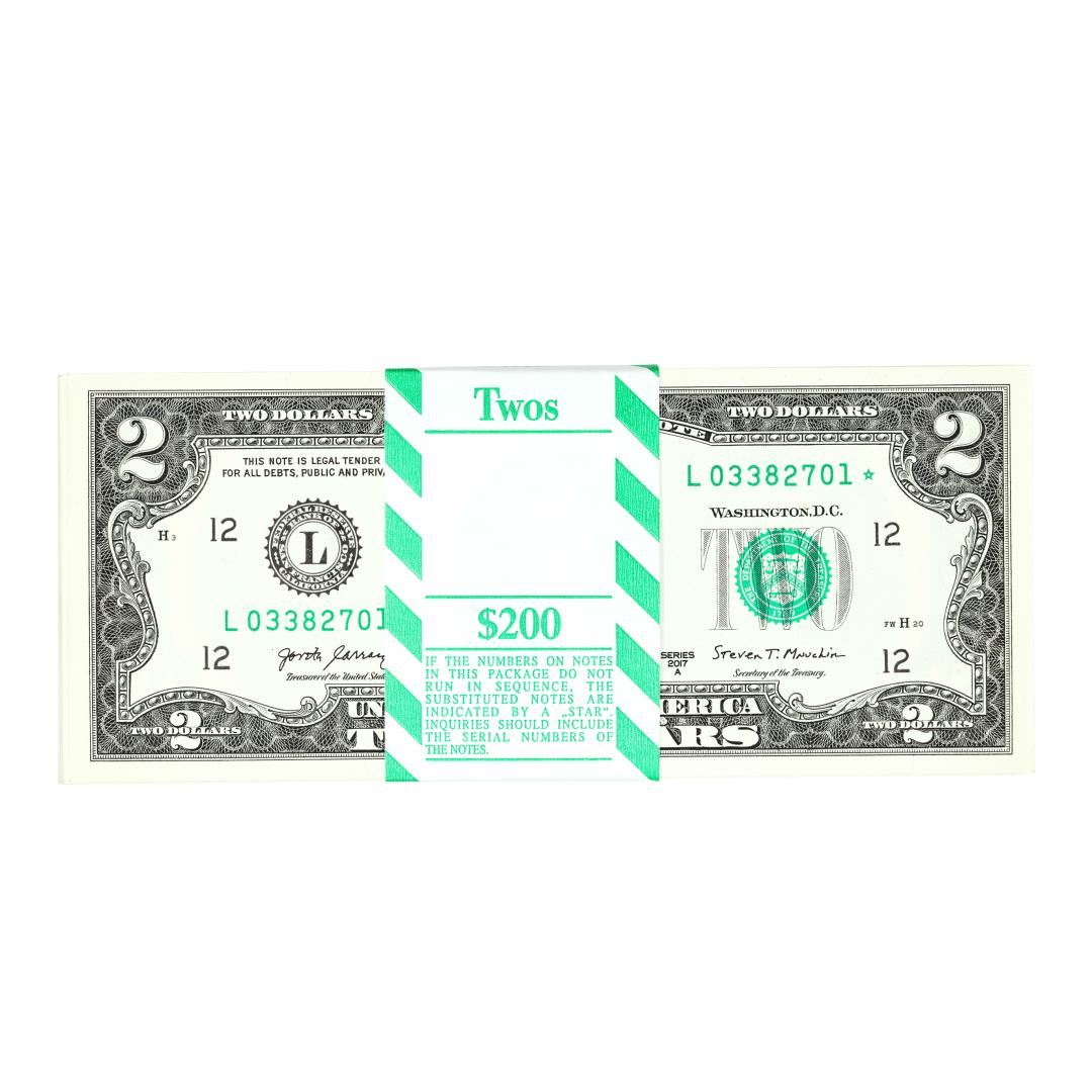 Pack of (100) Consecutive 2017A $2 Federal Reserve STAR Notes San Francisco