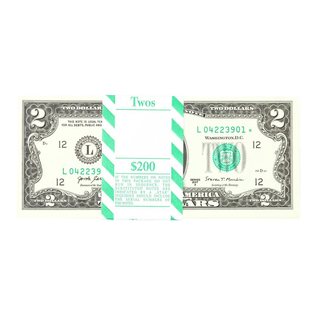 Pack of (100) Consecutive 2017A $2 Federal Reserve STAR Notes San Francisco