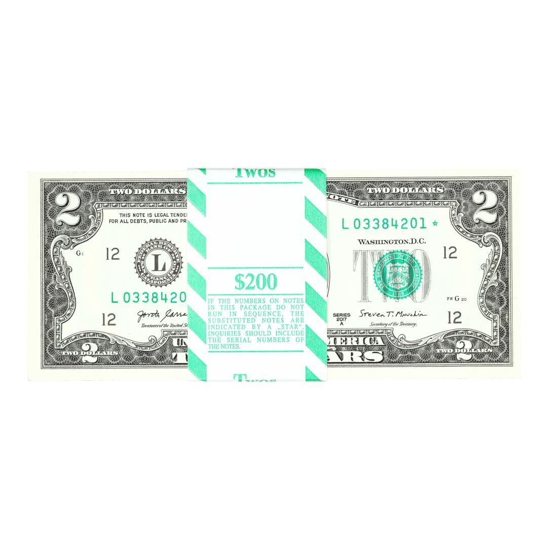Pack of (100) Consecutive 2017A $2 Federal Reserve Star Notes San Francisco