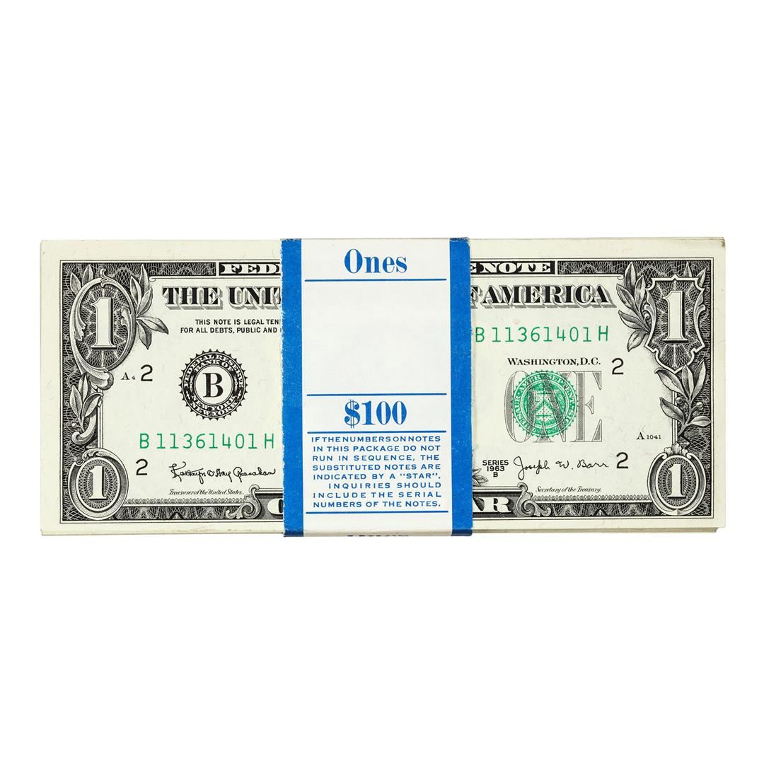 Pack of (100) Consecutive Barr 1963B $1 Federal Reserve Notes New York