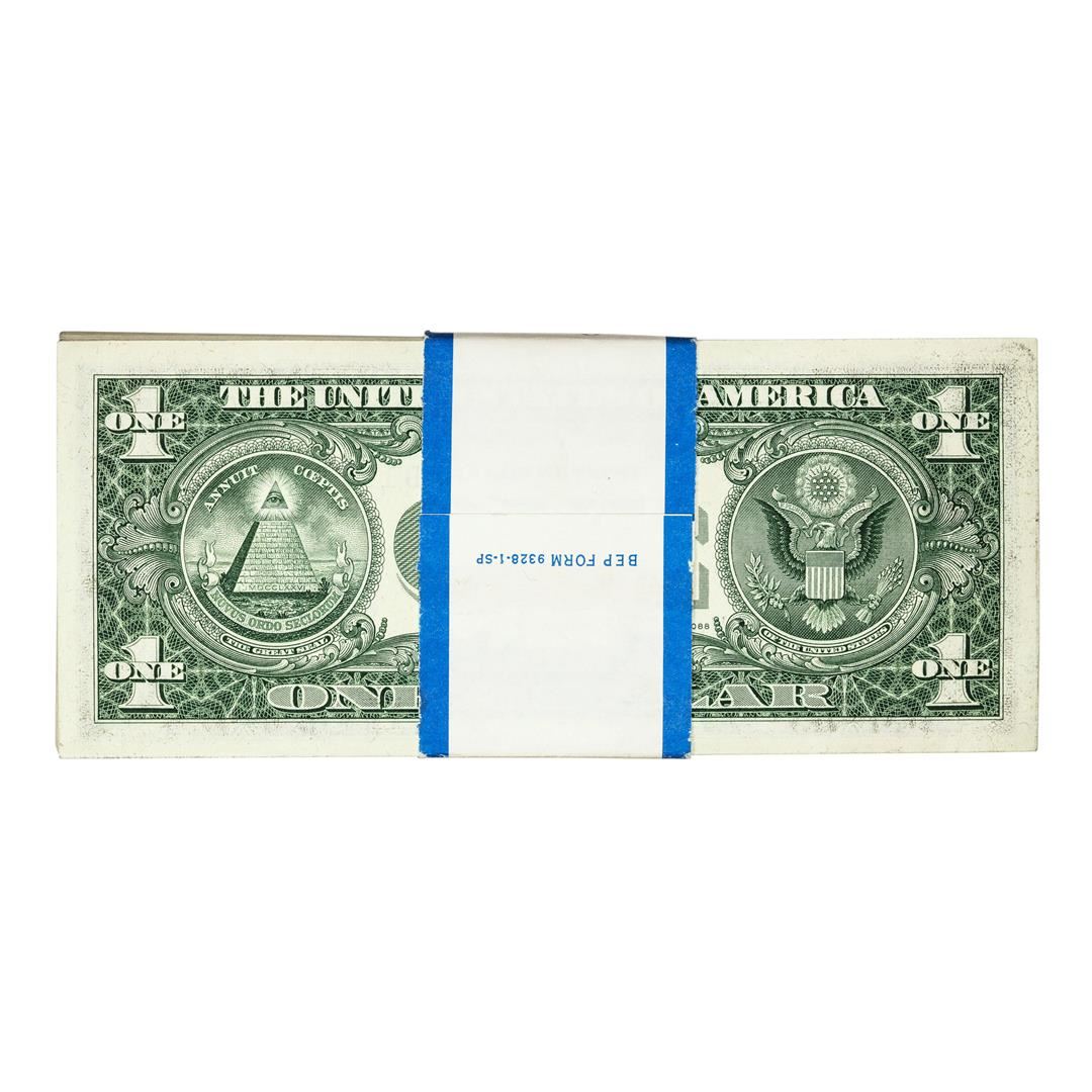 One Pack of (100) Consecutive Barr 1963B $1 Federal Reserve Notes New York.