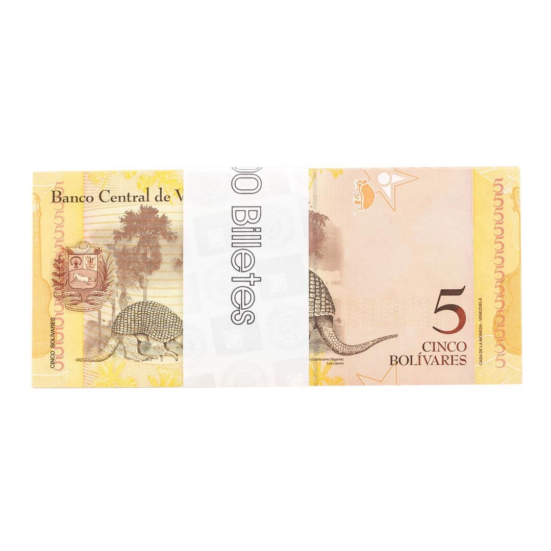 One Pack of (100) Consecutive Venezuela 5 Bolivares Uncirculated Notes.