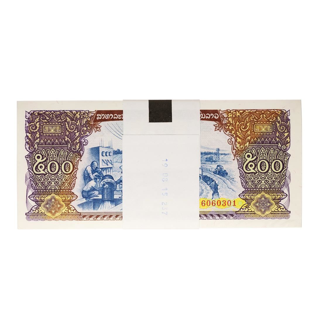 One Pack of (100) Uncirculated 1988 Laos 500 Kip Bank Notes.