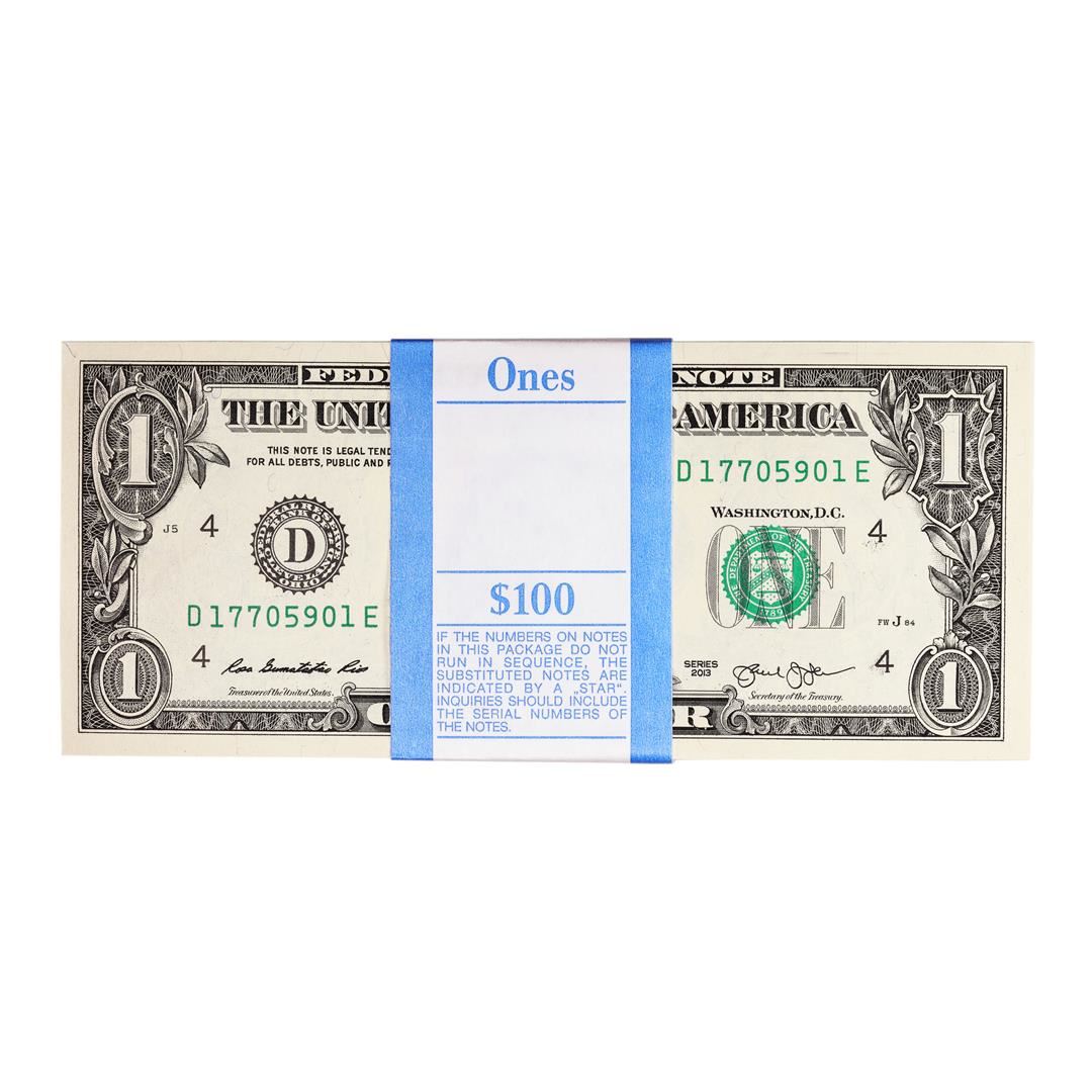 Pack of (100) Uncirculated Consecutive 2013 $1 Federal Reserve Notes Cleveland