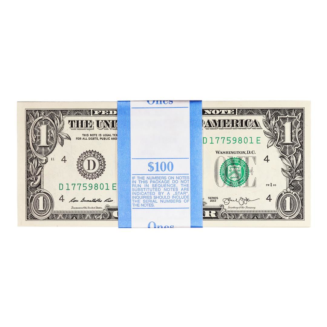 Pack of (100) Uncirculated Consecutive 2013 $1 Federal Reserve Notes Cleveland