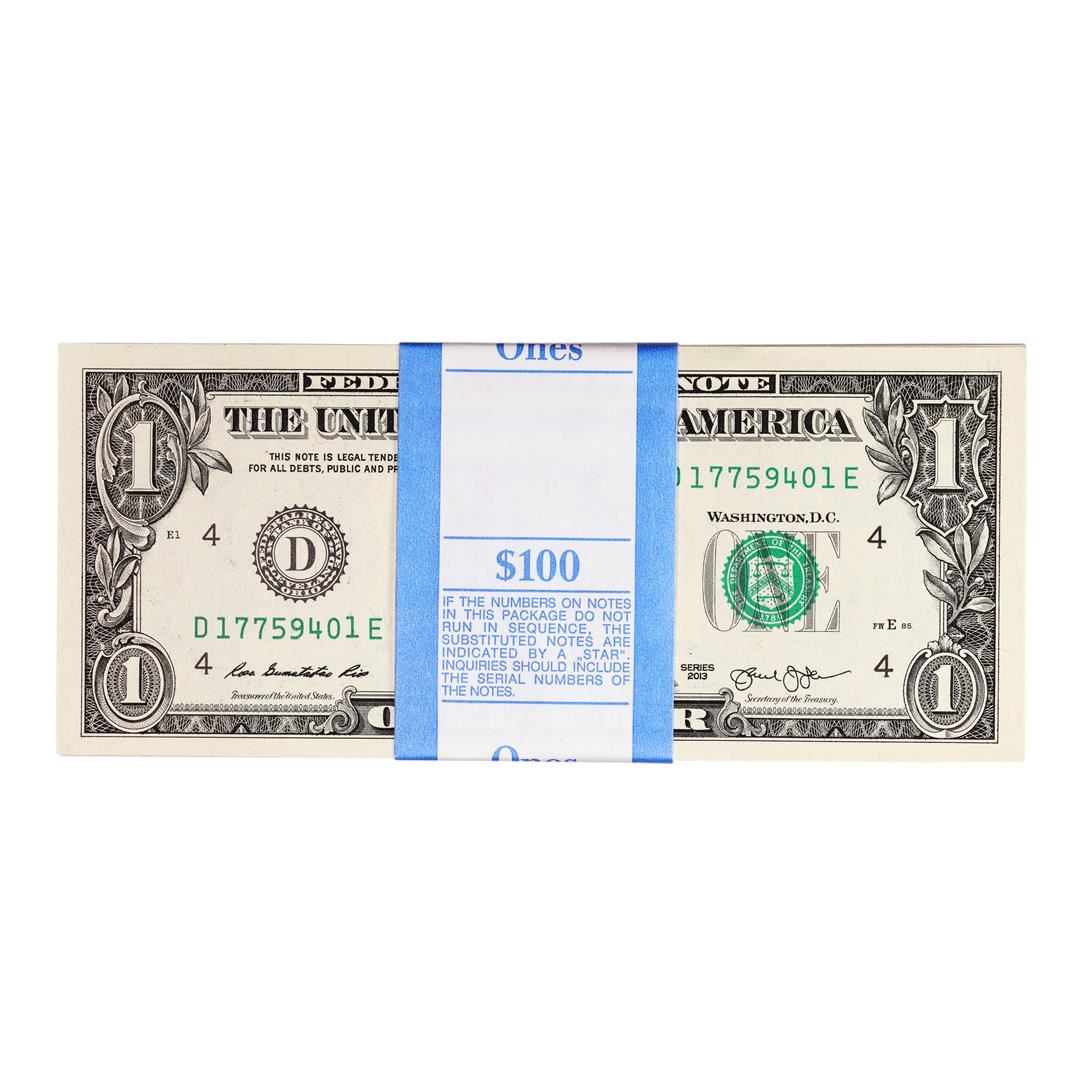 Pack of (100) Uncirculated Consecutive 2013 $1 Federal Reserve Notes Cleveland