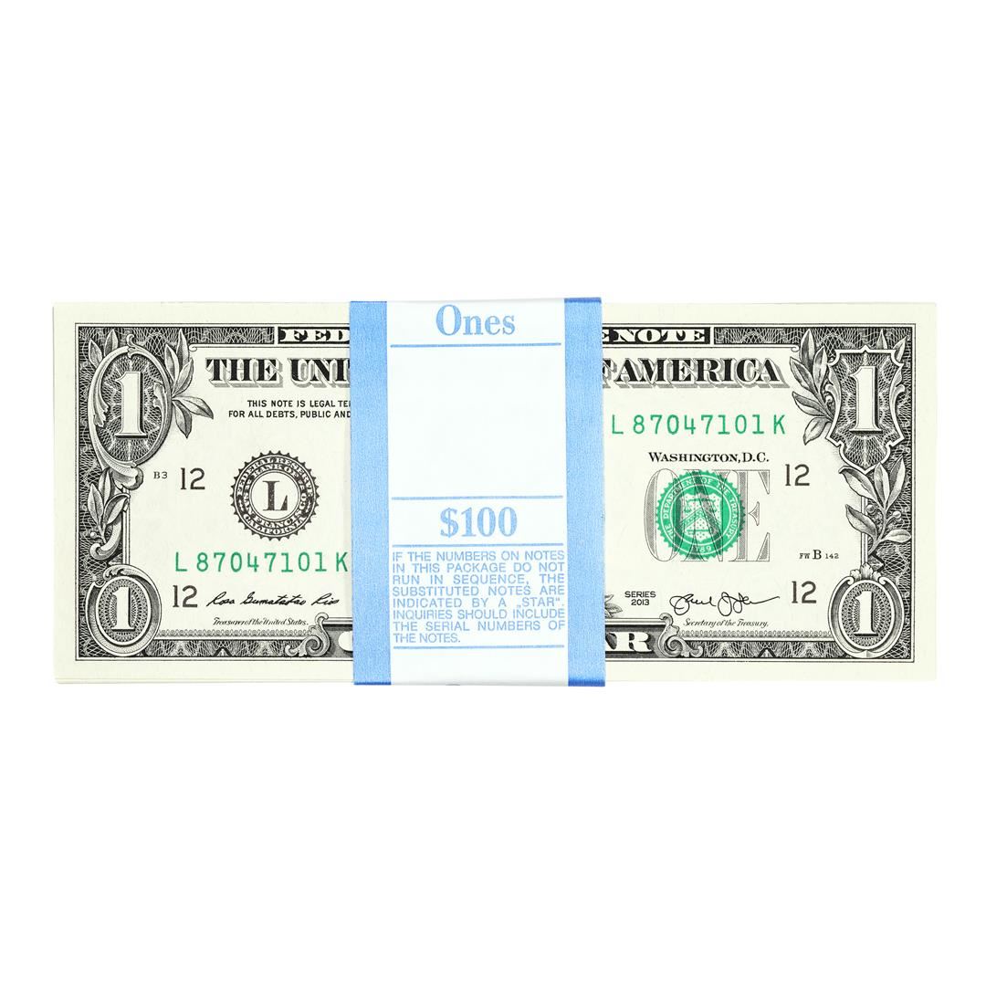 One Pack of (100) Uncirculated Consecutive 2013 $1 Federal Reserve Notes San Francisco.