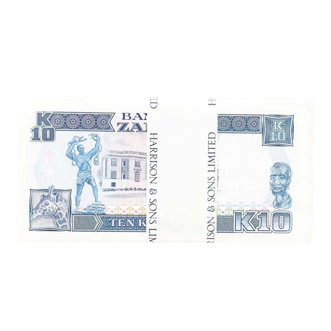 One Pack of (100) Zambia 10 Kawacha Uncirculated Notes.
