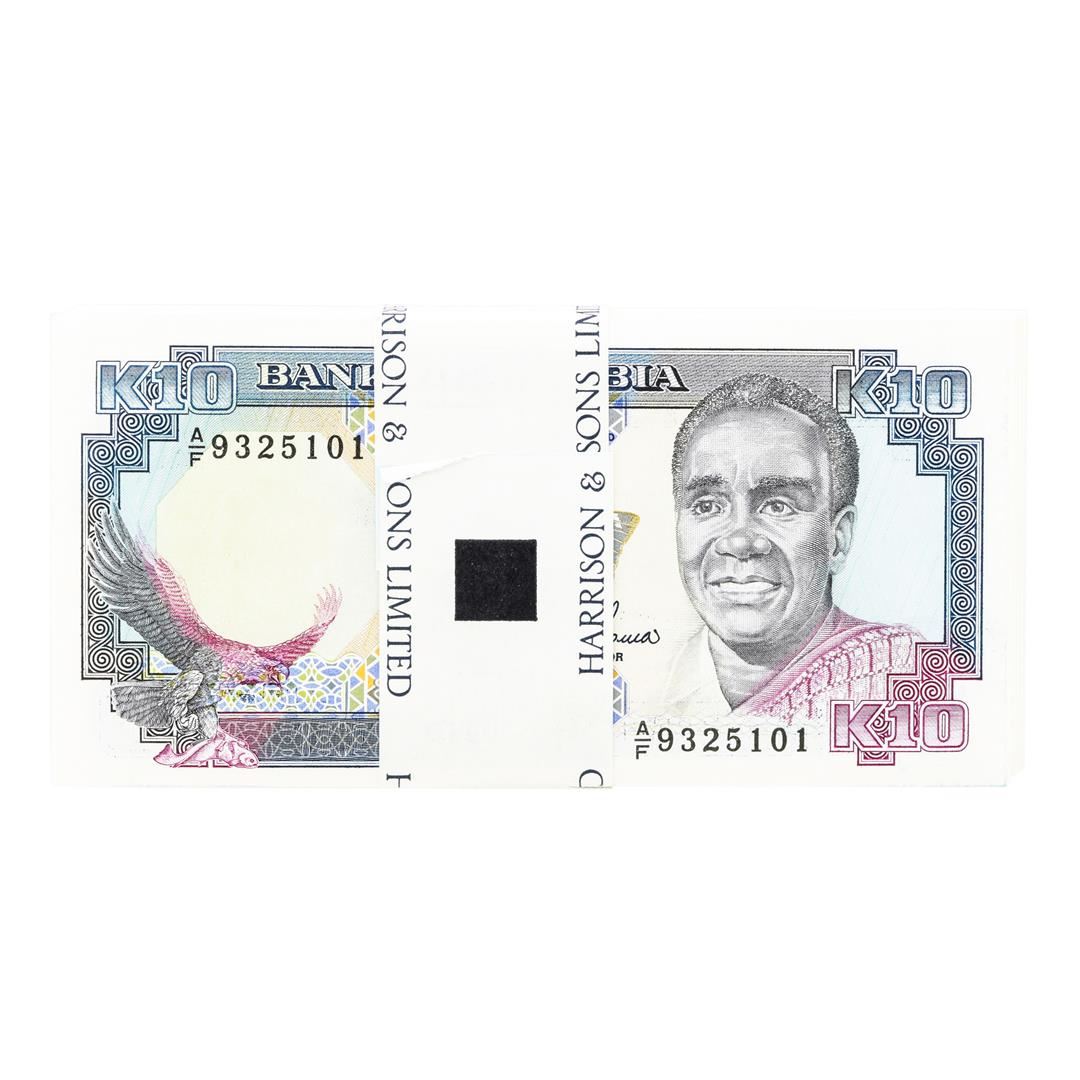 One Pack of (100) Zambia 10 Kawacha Uncirculated Notes.