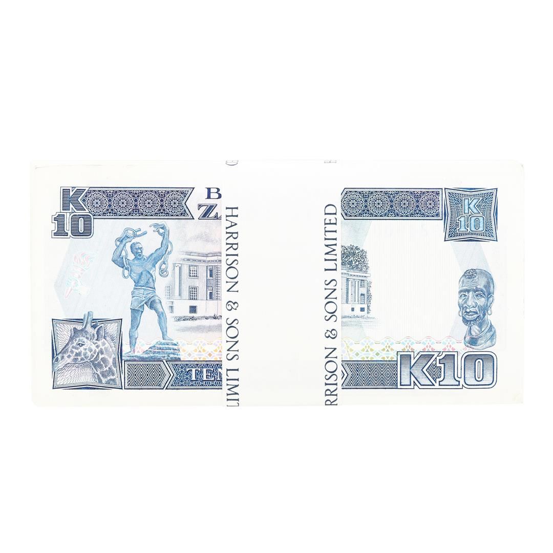 One Pack of (100) Zambia 10 Kawacha Uncirculated Notes.