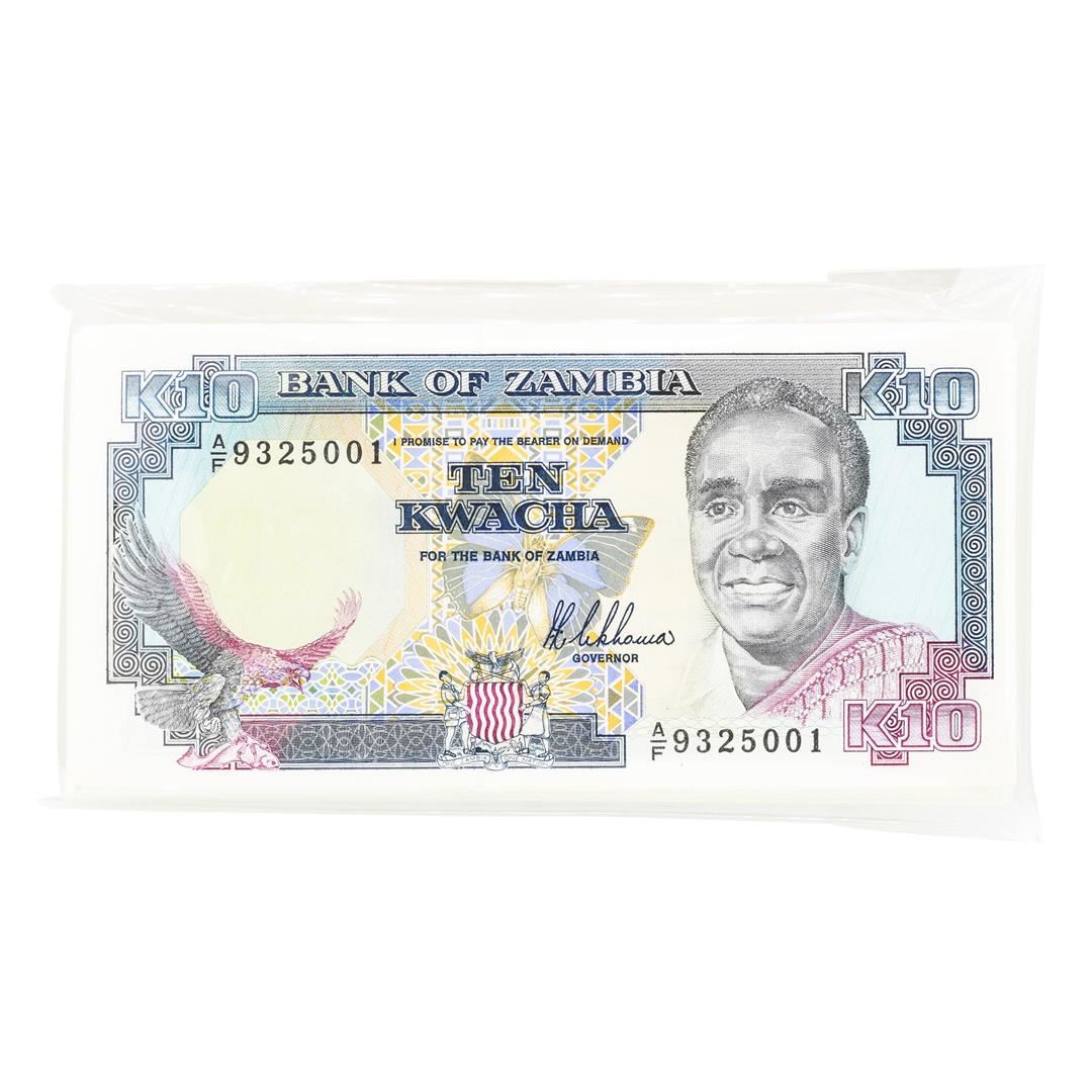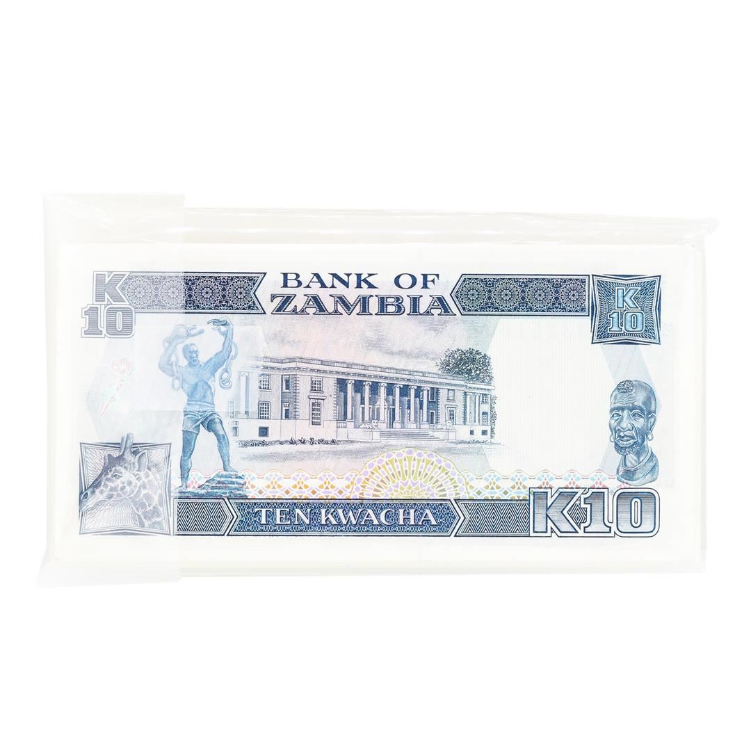 One Pack of (100) Zambia 10 Kawacha Uncirculated Notes.