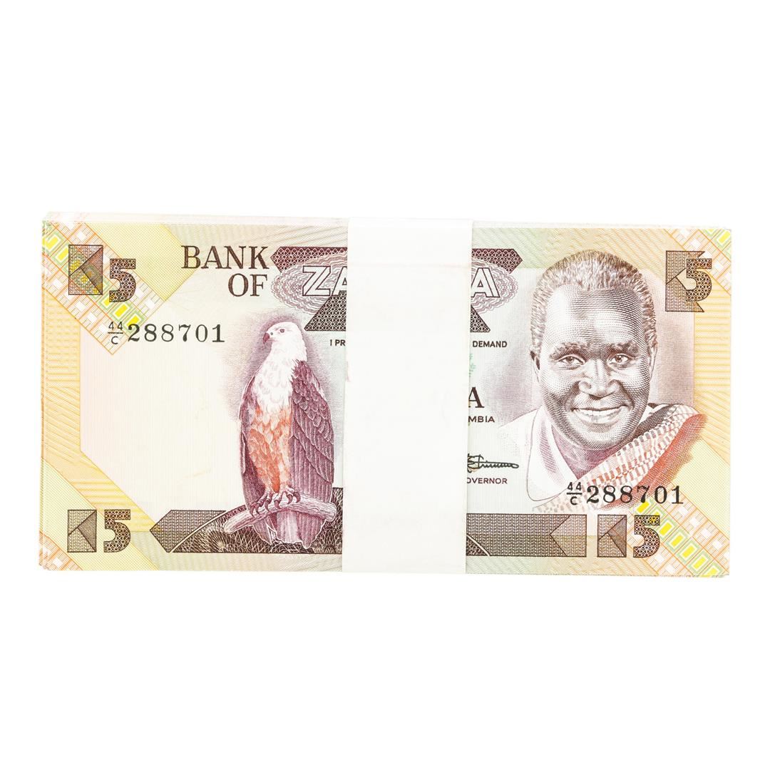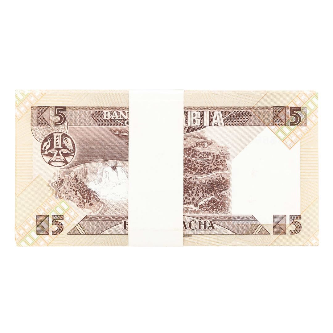 One Pack of (100) Zambia 5 Kawacha Uncirculated Notes.