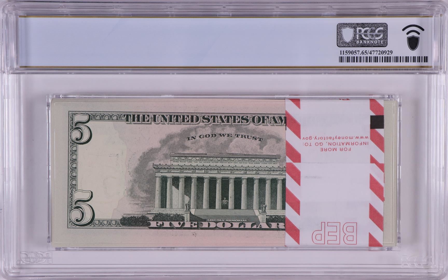 One Pack of 2017A $5 Federal Reserve STAR Notes Atlanta Fr.1998-F* PCGS Gem UNC 65PPQ. PCGS Graded.