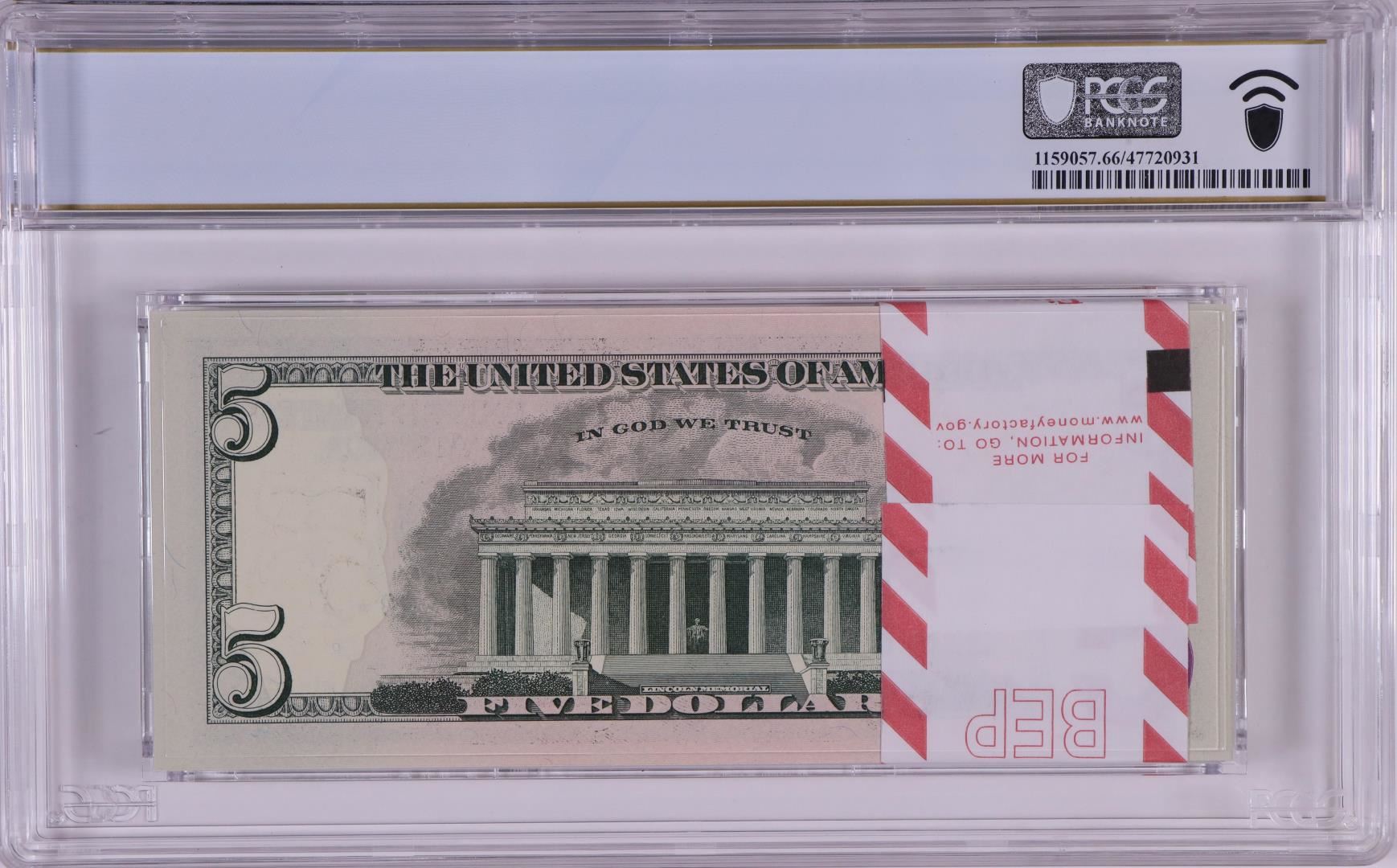 One Pack of 2017A $5 Federal Reserve STAR Notes Atlanta Fr.1998-F* PCGS Gem UNC 66PPQ. PCGS Graded.