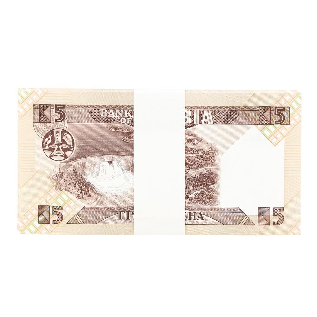One Pack of (90) Zambia 5 Kawacha Uncirculated Notes.