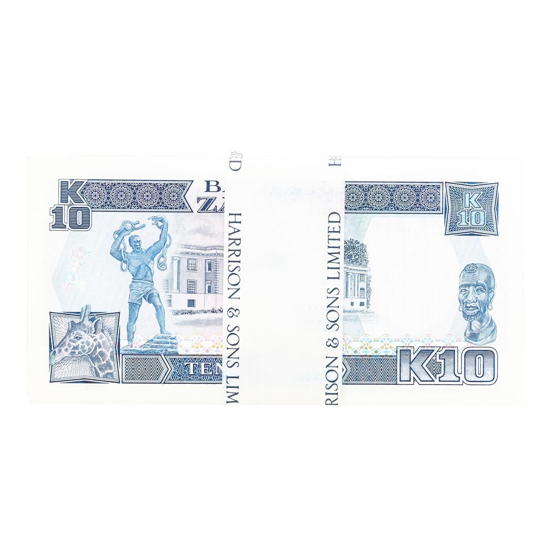 One Pack of (95) Zambia 10 Kawacha Uncirculated Notes.