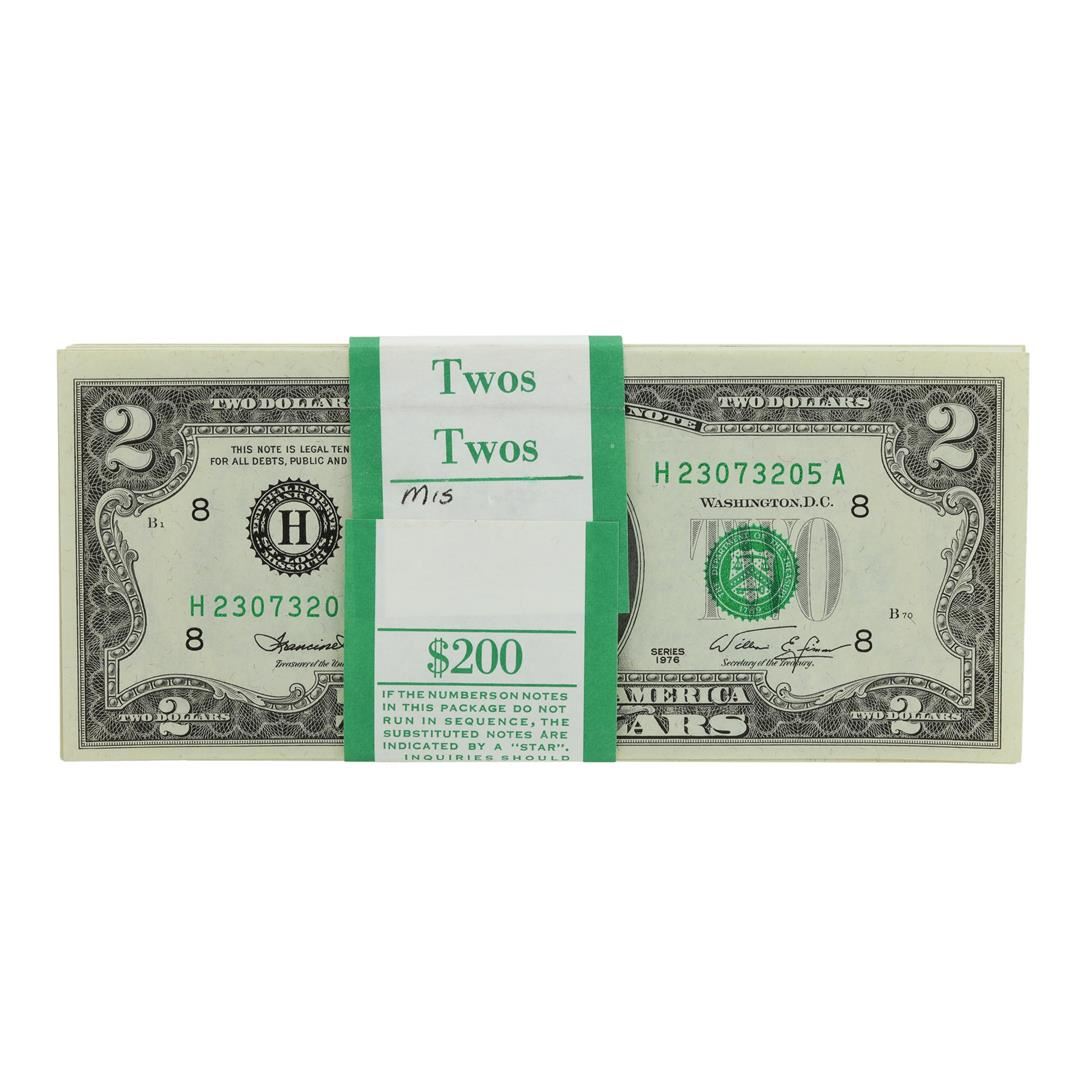 One Pack of (96) 1976 $2 Federal Reserve Notes Uncirculated St. Louis.