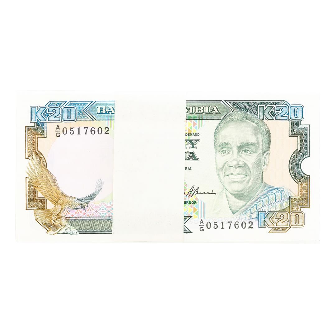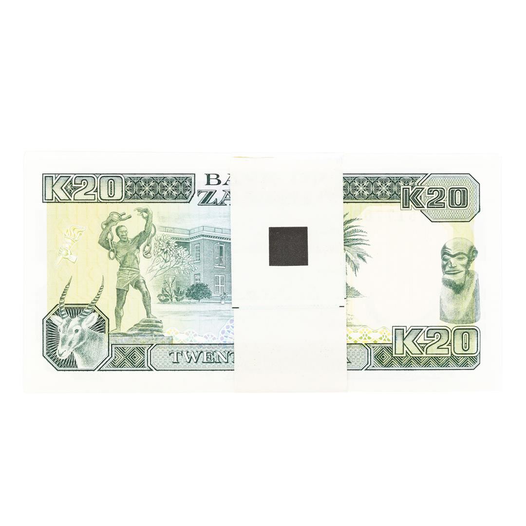 One Pack of (99) Zambia 20 Kawacha Uncirculated Notes.