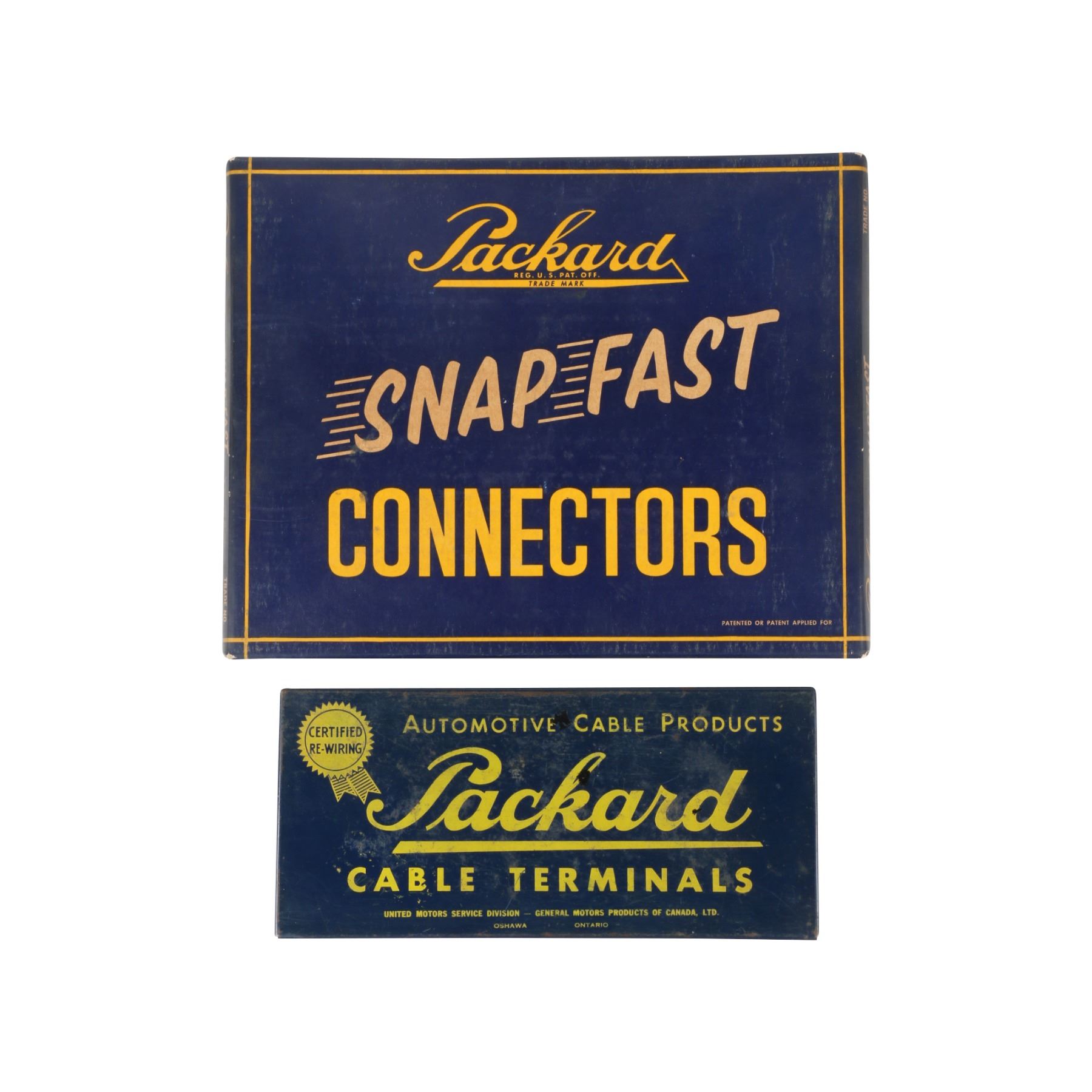 Two (2) assortments in cardboard and tin boxes. Surface scratches and minor discolouration to surface. 13" x 1" x 10.5"; 11.25" x 5" x 1". $100-200.