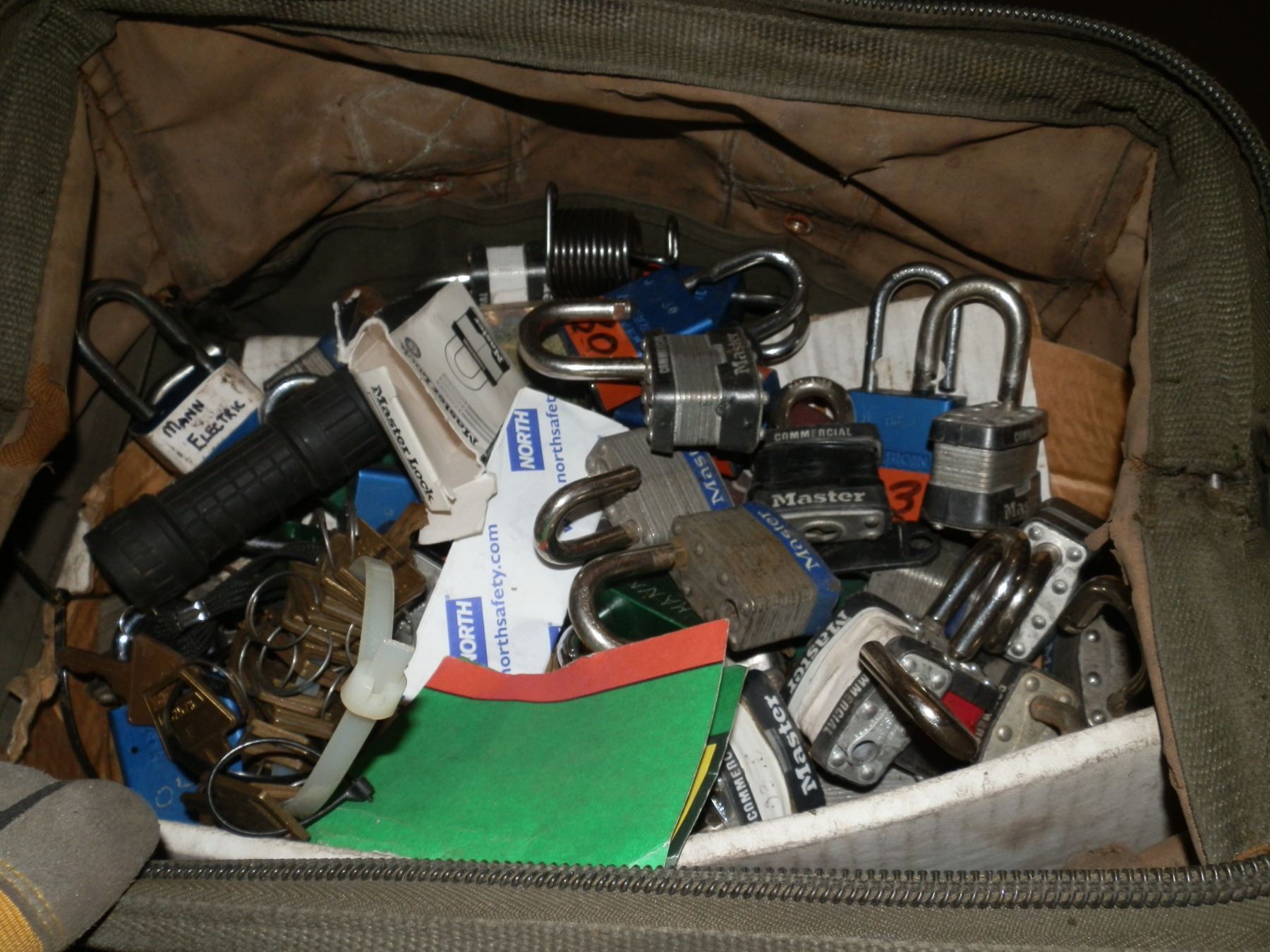 lots of used Paddle Locks and keys, you also get get a air hammer condition unknown and a chunk of steel....used