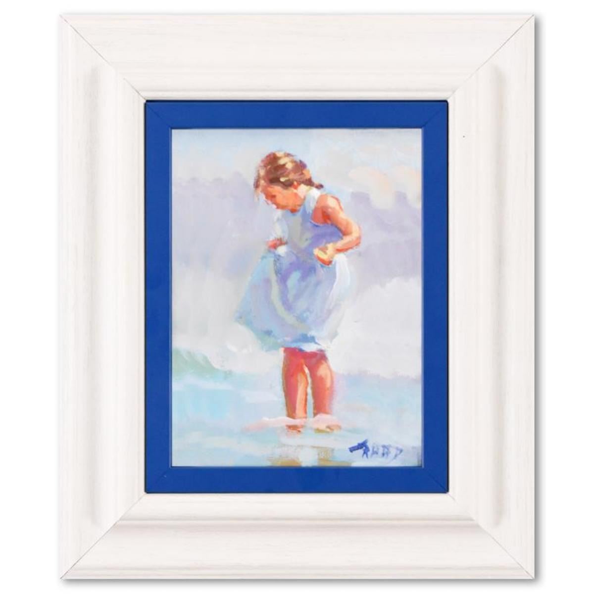 "Paddling" is an original acrylic painting on board by Lucelle Raad, hand signed by the artist. Includes Letter of Authenticity. Measures approx. 11" x 13" (frame), 5.5" x 7.5" (image).