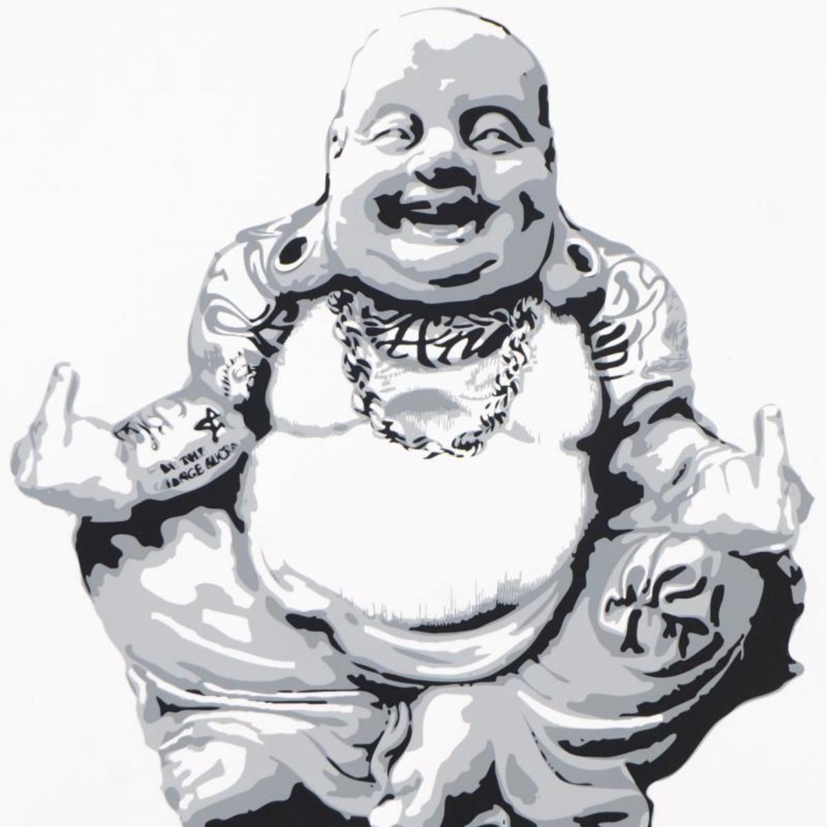 "Gangsta Buddha" is a limited edition silkscreen on archival paper numbered hand signed by the artist. Includes Letter of Authenticity. Measures approx. Measures approx. 18" x 24" (image). Reference #: 239696.