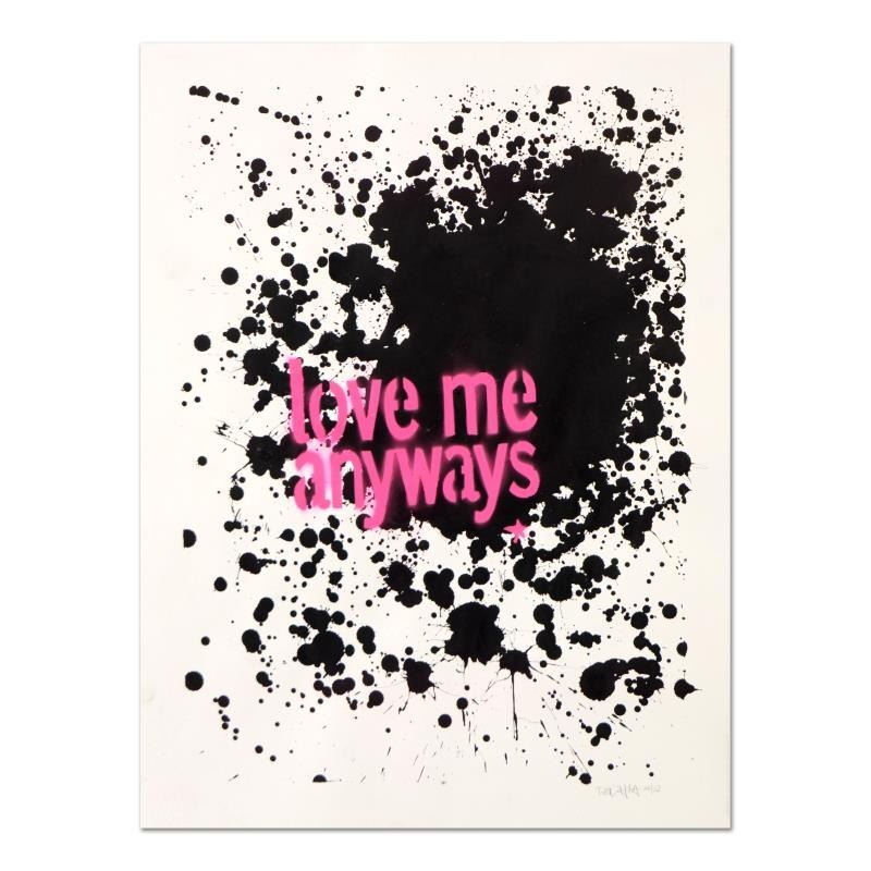 "Love Me Anyways" is a hand painted unique variation silkscreen on archival paper numbered 4/12 hand signed by the artist. Includes Letter of Authenticity. Measures approx. Measures approx. 18" x 24" (image). Reference #: 239703