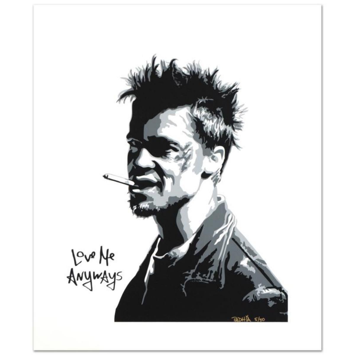 "Love Me Anyways" is a limited edition silkscreen serigraph on paper, numbered hand signed by the artist. This piece features Brad Pitt as Tyler Durden from "Fight Club". Includes Certificate of Authenticity! Measures approx. Measures approx. 20" x 24" (with border); 16" x 19" (image). Reference #: 218235.