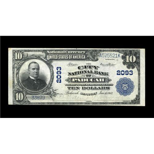 <B>Paducah, KY</B></I> - $10 1902 Plain Back Fr. 629 <B>The City NB</B></I> Ch. # 2093<BR>This attractive <B>Very Fine-Extremely Fine</B></I> Plain Back comes in a higher grade than typically seen from here.