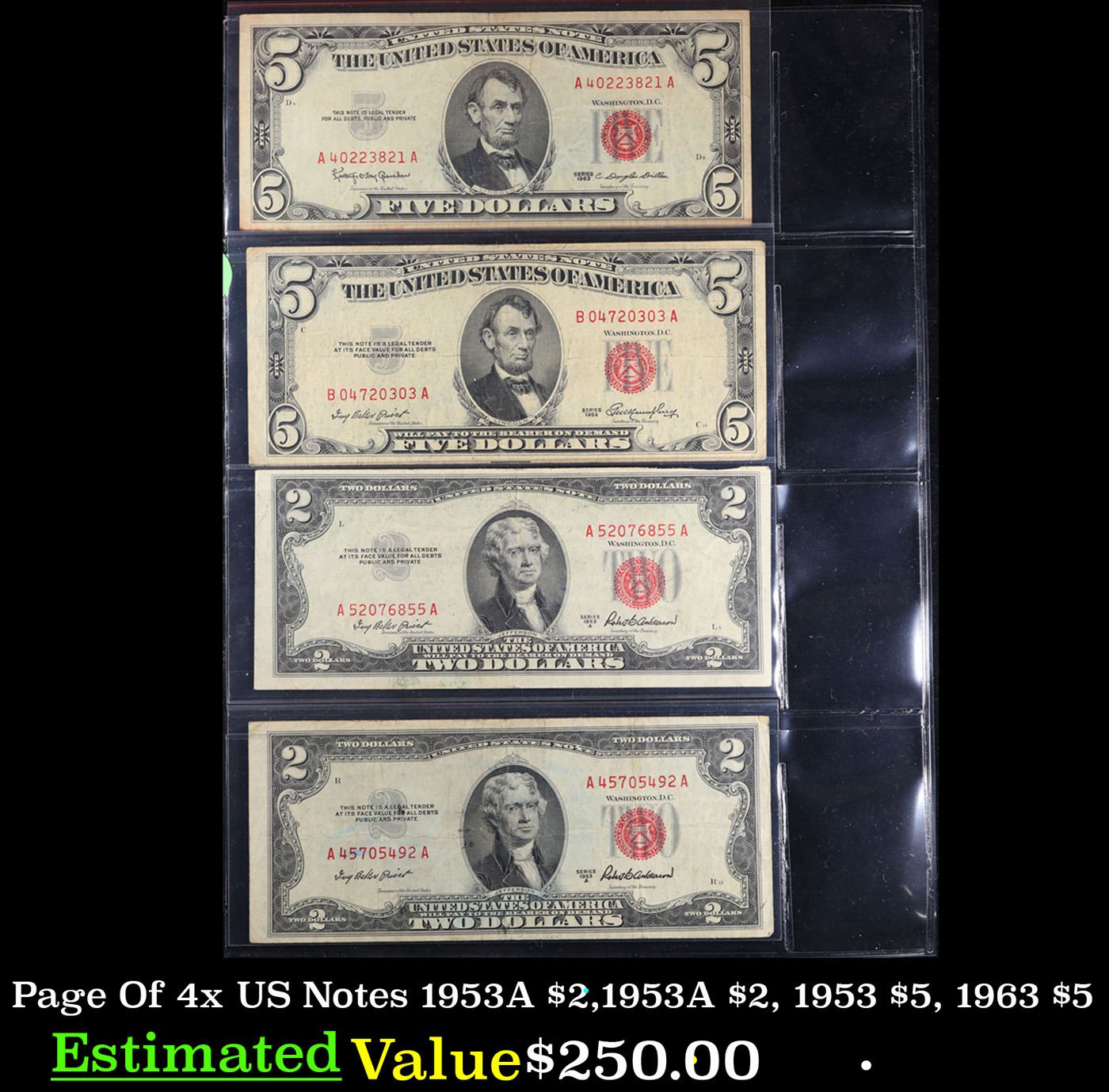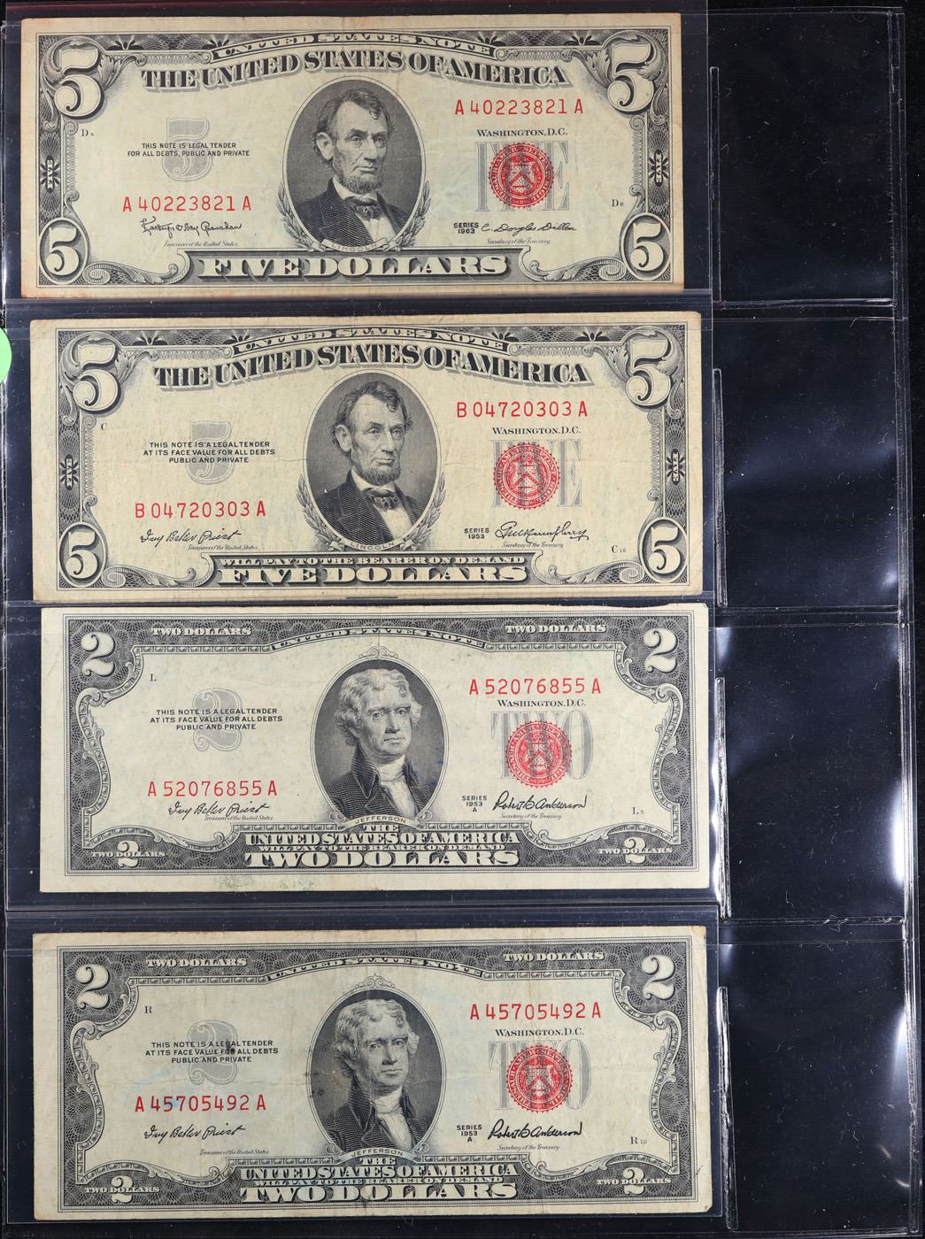 Page Of 4x US Notes 1953A $2, 1953A $2, 1953 $5, 1963 $5