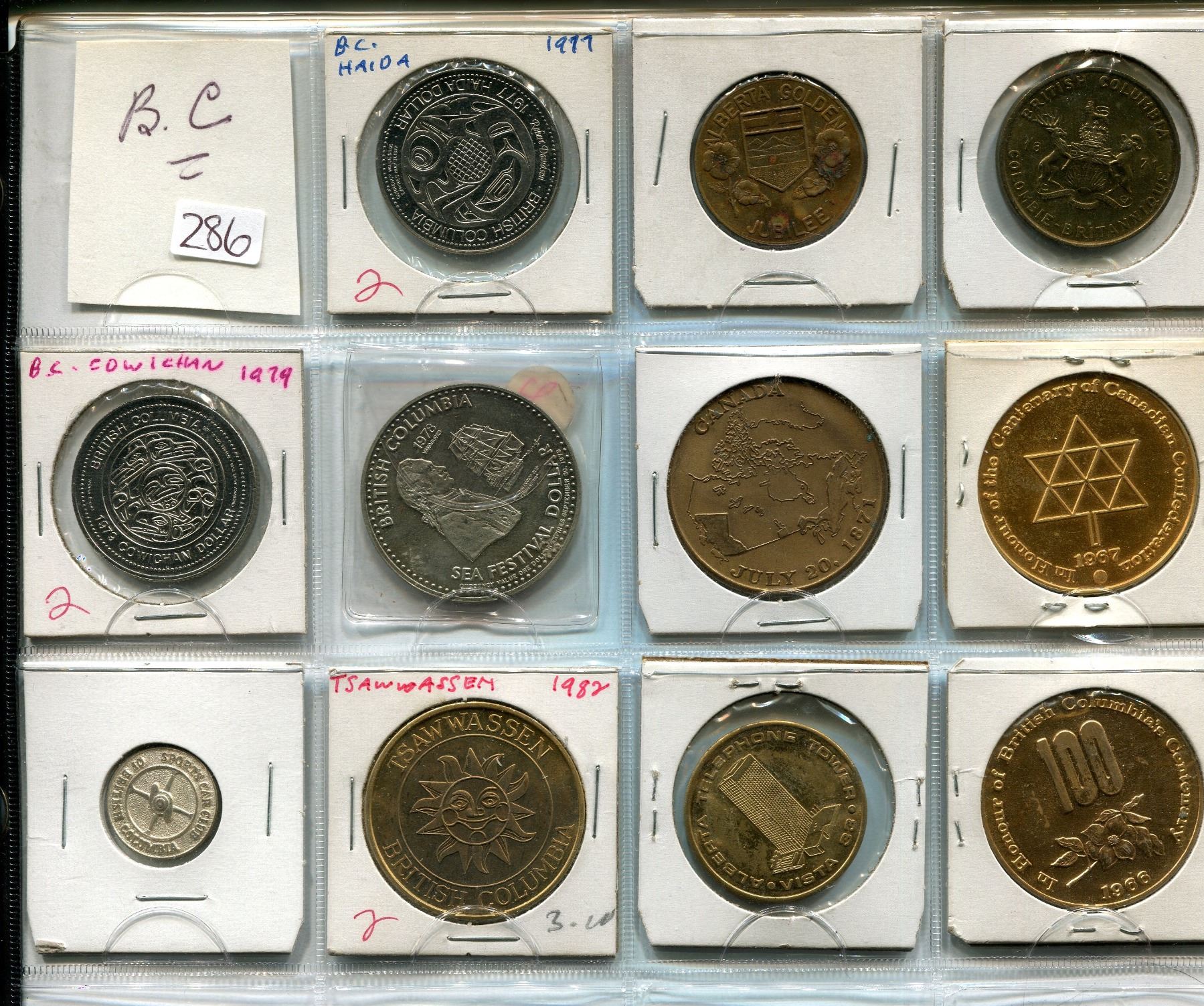 Page of 11 British Columbia Tokens,11 tokens