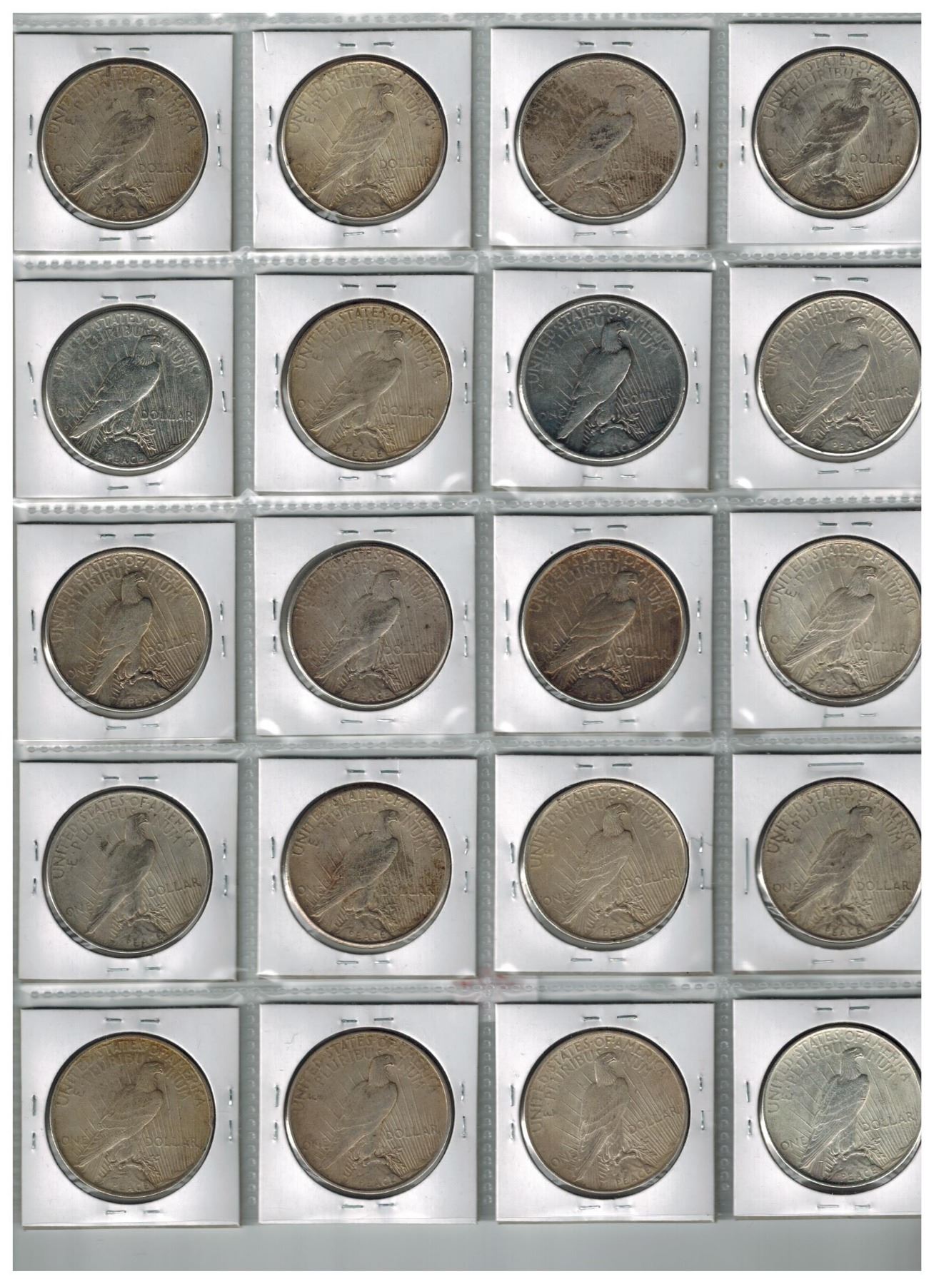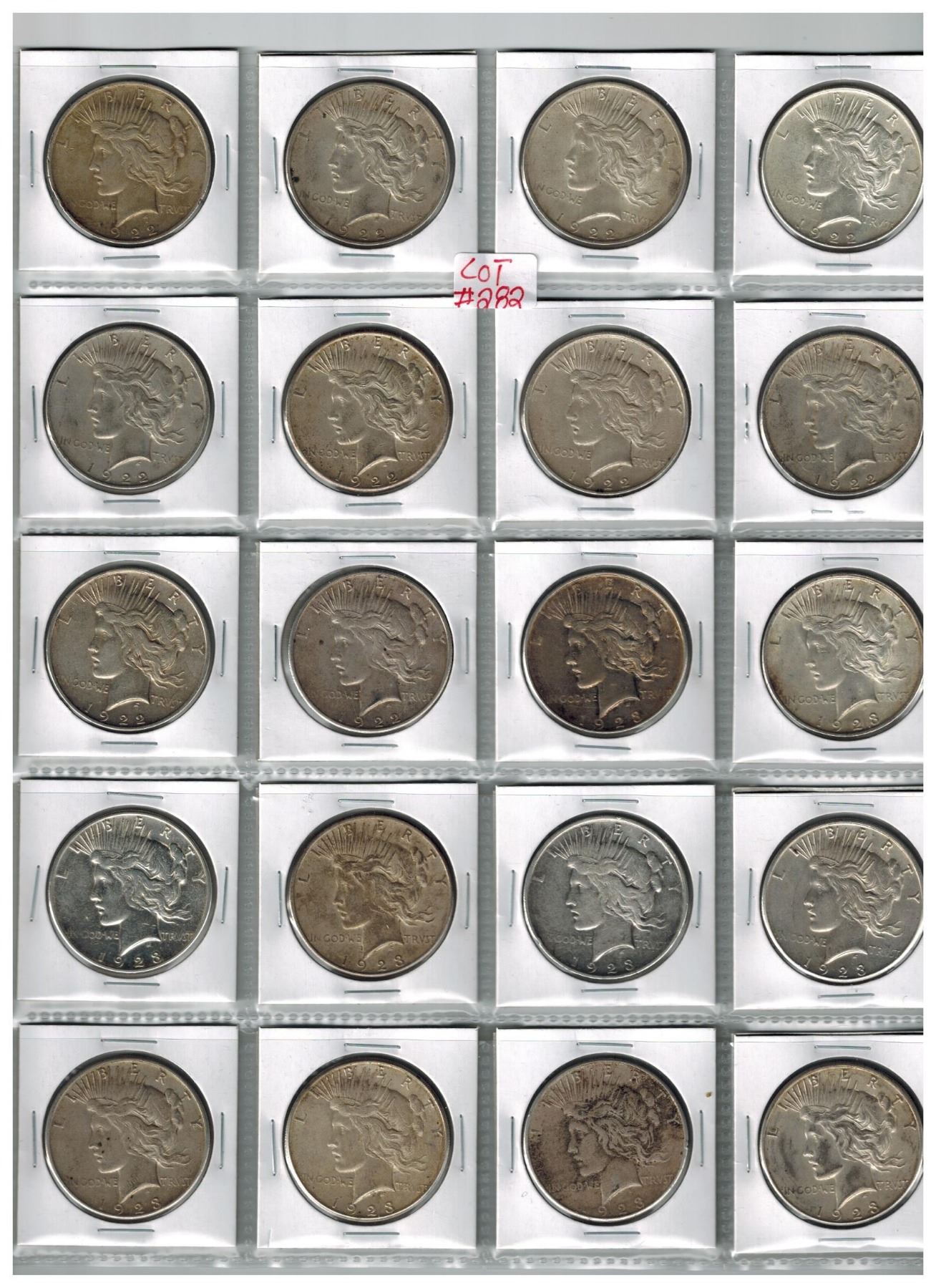 Lot of 20 US Peace Dollars. 10 are 1922 and the other 10 are 1923