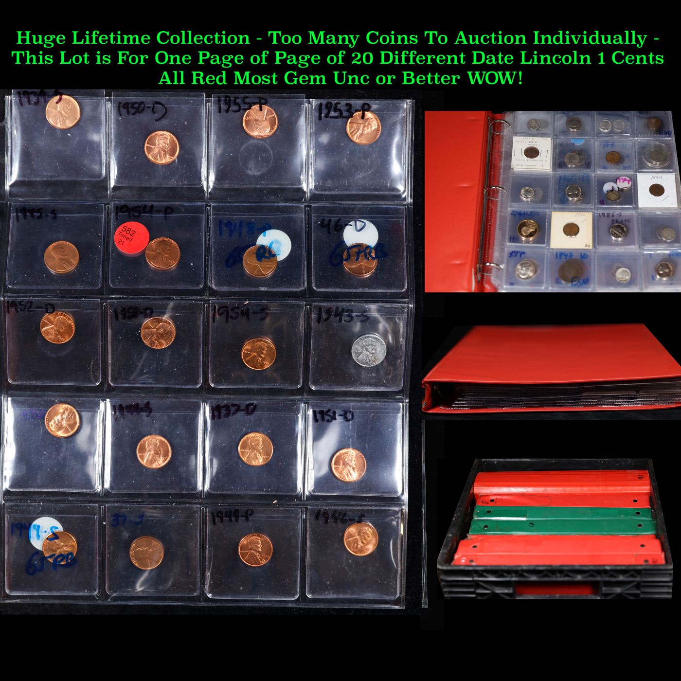 Page of 20 Different Date Lincoln 1 Cents All Red Most Gem Unc or Better.