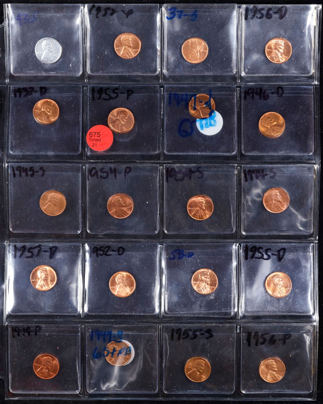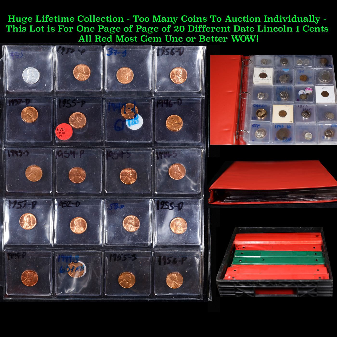 Page of 20 Different Date Lincoln 1 Cents All Red Most Gem Unc or Better.