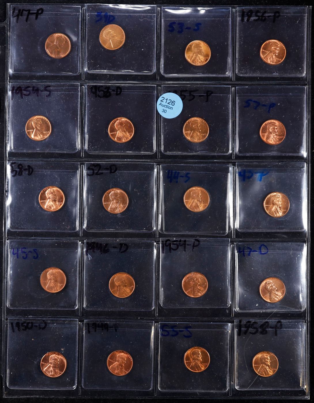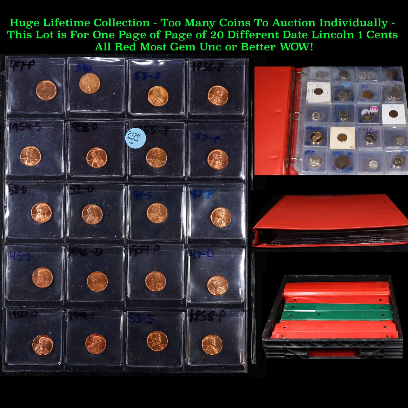 Page of 20 Different Date Lincoln 1 Cents All Red Most Gem Unc or Better.
