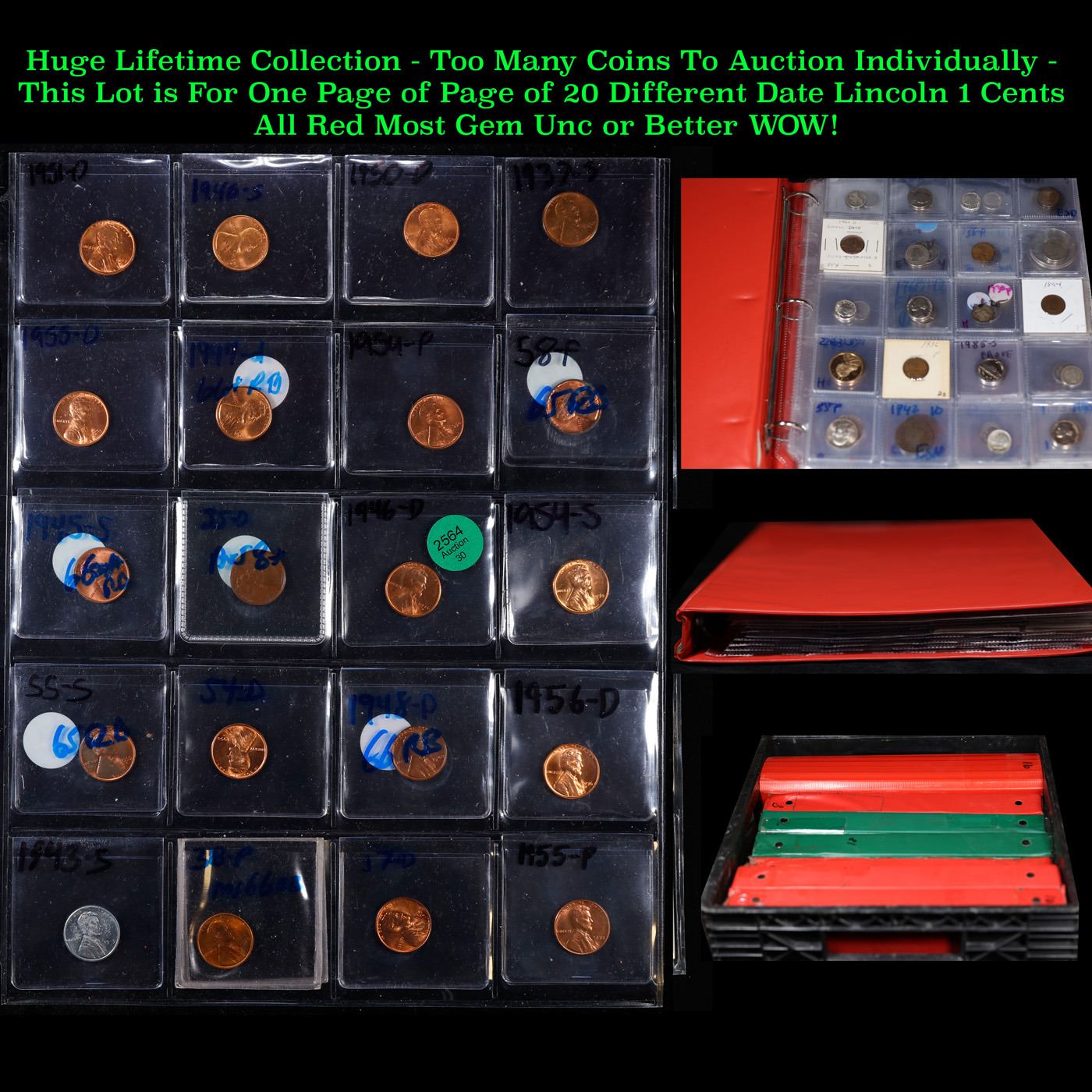 Page of 20 Different Date Lincoln 1 Cents Most Red and 1 Steel, Most Gem Unc or Better.